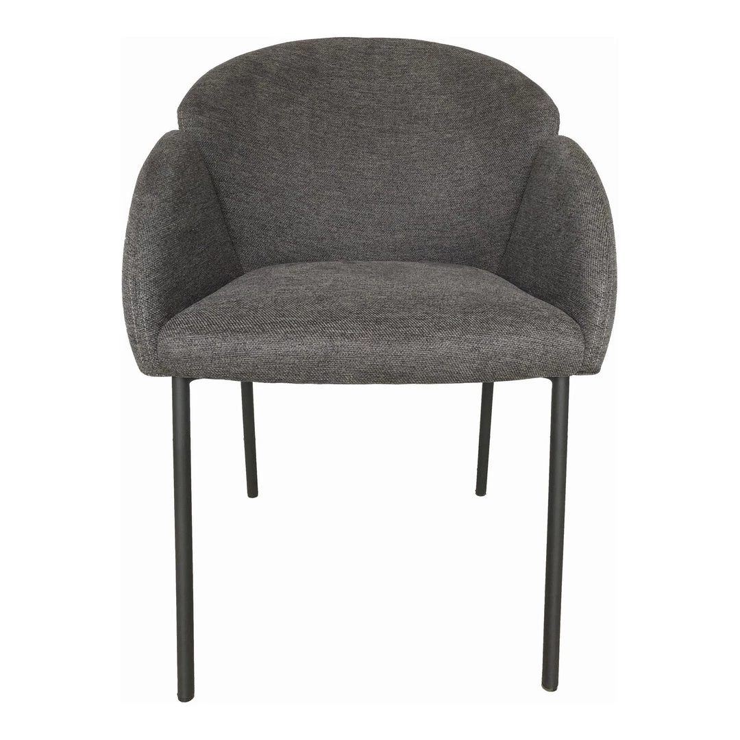 Set on an iron frame, the curved wing arms of Gigi bring a beautifully functional design to the dinner table. A little modern, a little retro-chic with a curved, full-rise, slightly angled back, soft grey upholstery and slender, no-nonsense legs.