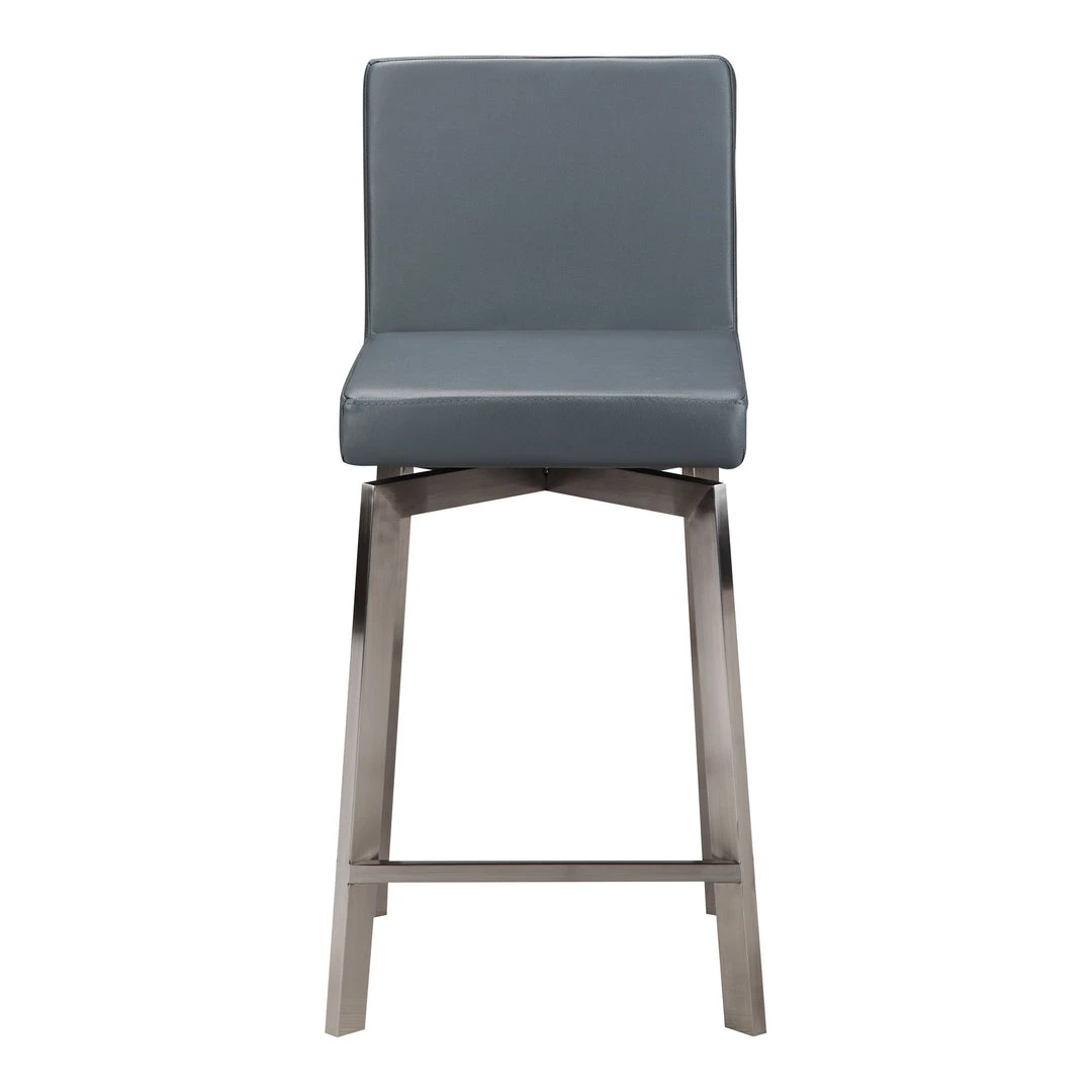 This counter stool has sleek grey upholstery, a stylish contemporary design, and a swivel seat for extra comfort.