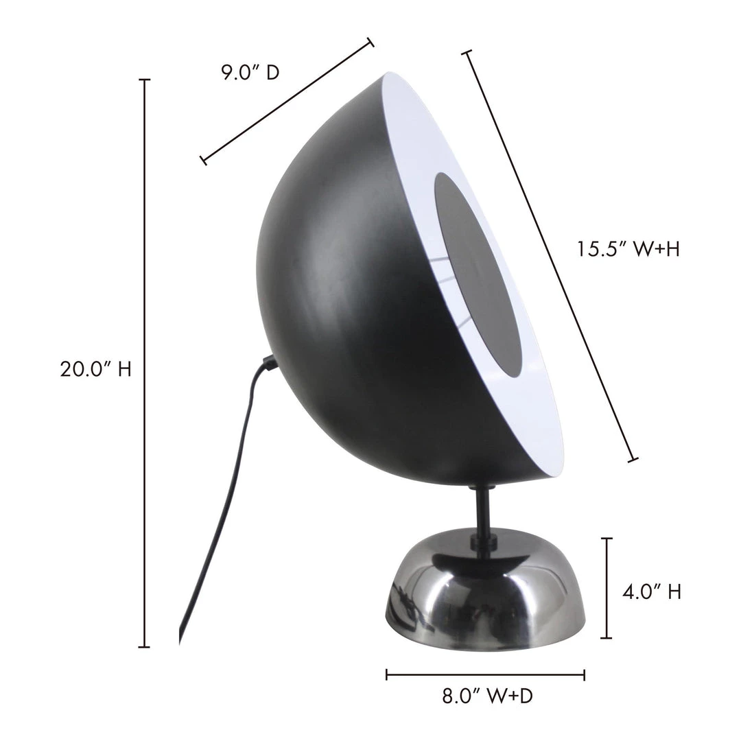 The Halo’s small size makes it the perfect lighting solution for compact spaces. A round, half-moon shaped stand and matte black finish are the finishing touches.