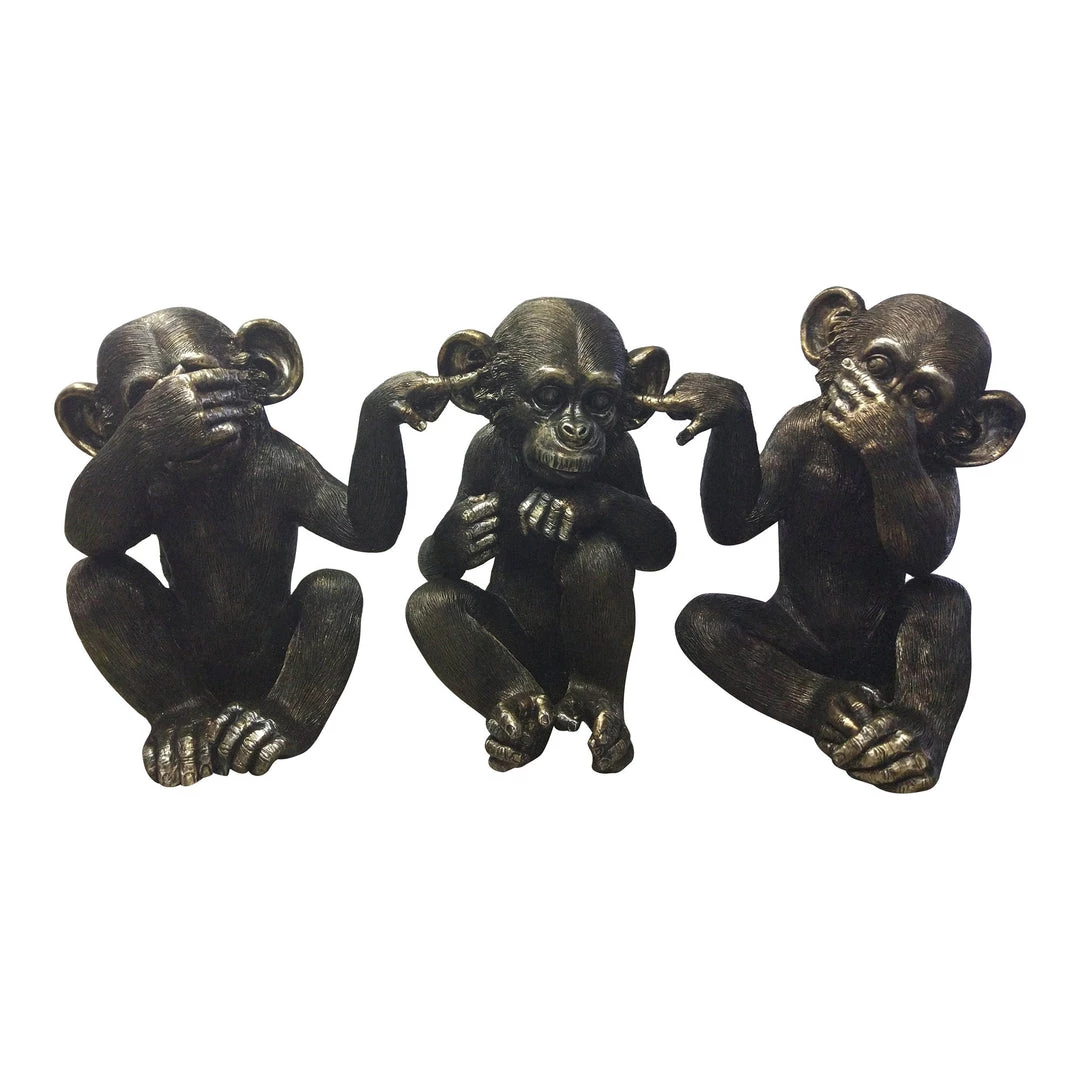 A fun and playful set of statues, featuring some of humanity’s closest cousins. A whimsical contemporary accent piece.