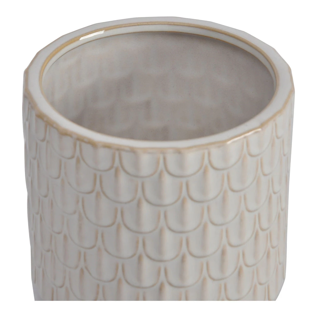 Here to amplify your bloom’s beauty, the Herb ceramic planter is a groovy creation that features hand-etched scale patterning in a neutral, nearly white shade.