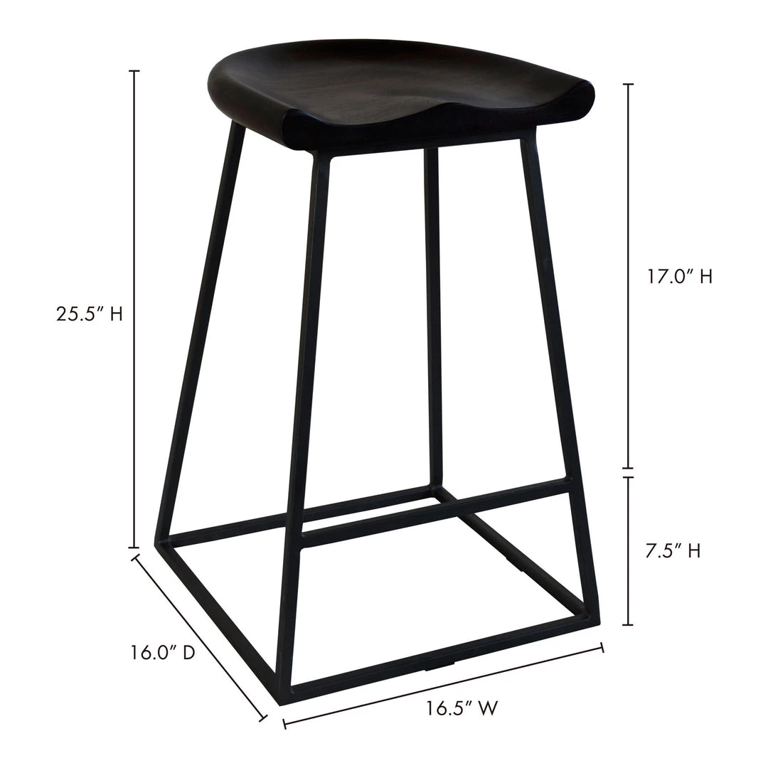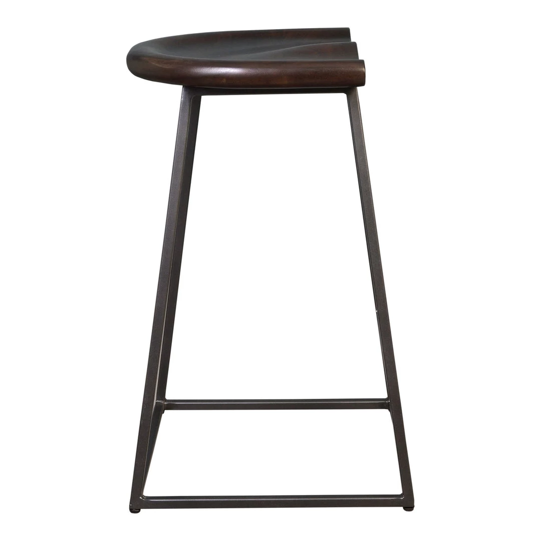 A supportive acacia seat and steal base give this counter stool its sleek modern look. The carved seat and foot ledge add extra comfort.
