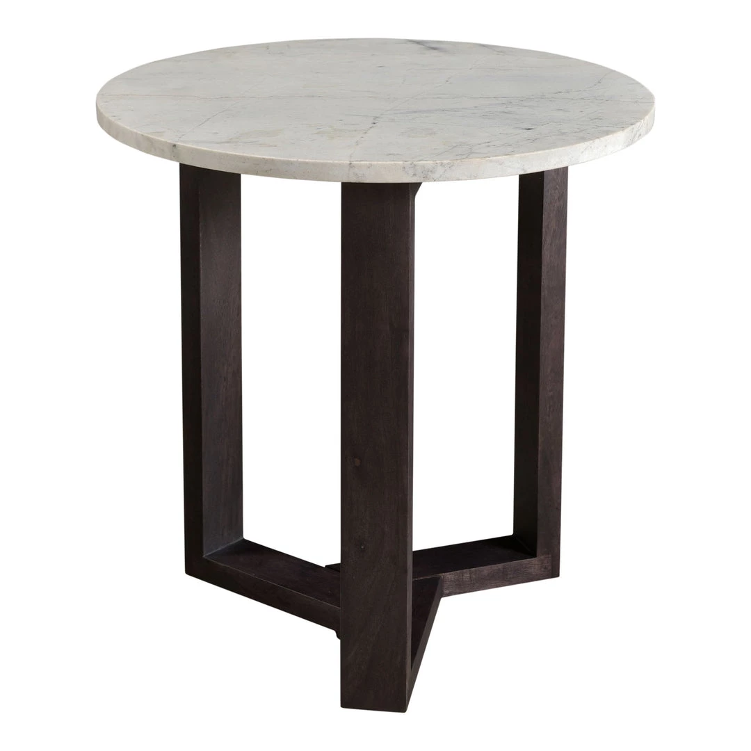 The Jinxx’s geometric acacia base and solid marble tabletop give it a design that perfectly evokes modern simplicity.