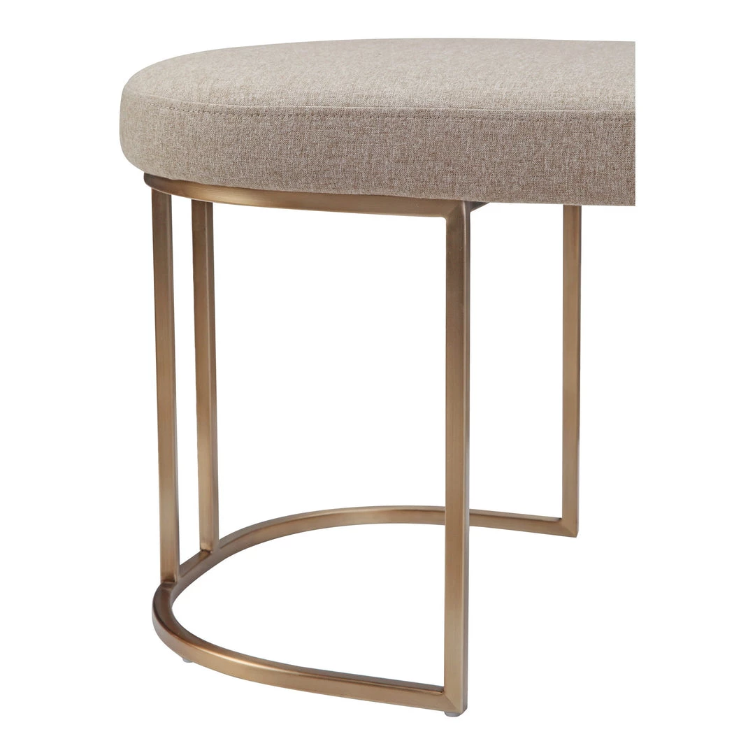 The antique furniture styling of the Kazu bench brings forward a great look with its use of brass finished stainless steel. Sit on soft fabric cushioning