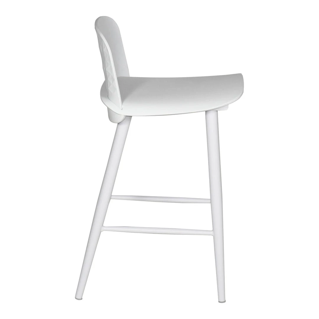 The Looey counter stool makes a comfortable seat for meals, drinks, or lounging. Its tapered legs feature a comfortable footrest, while its low back, angled seat and white finish make it as stylish as it is luxurious.