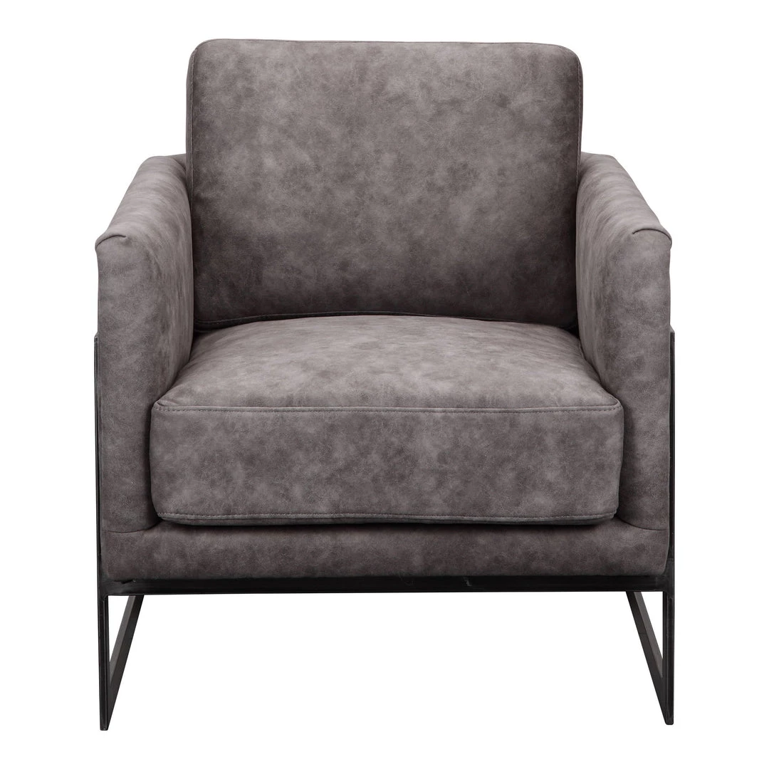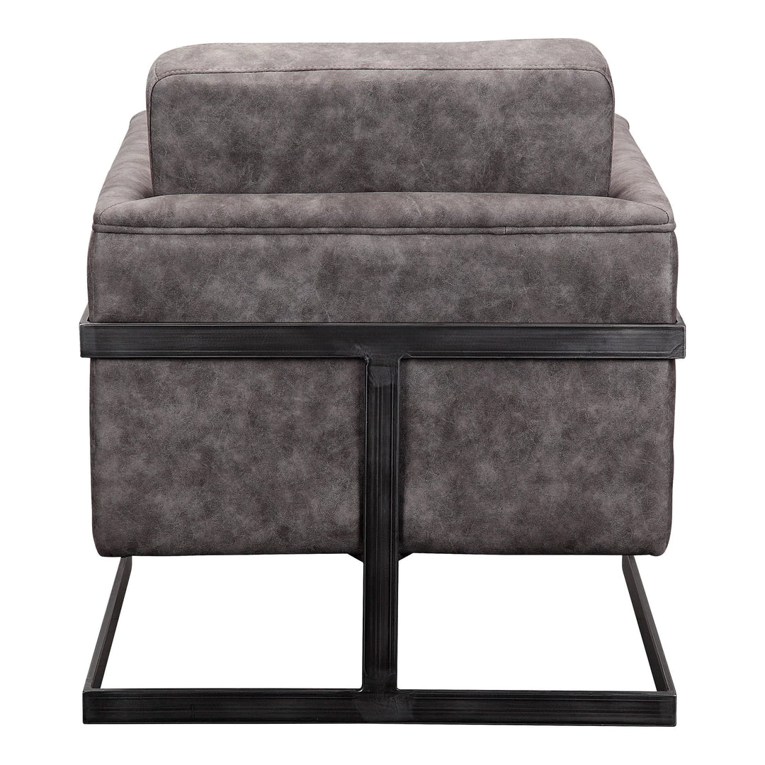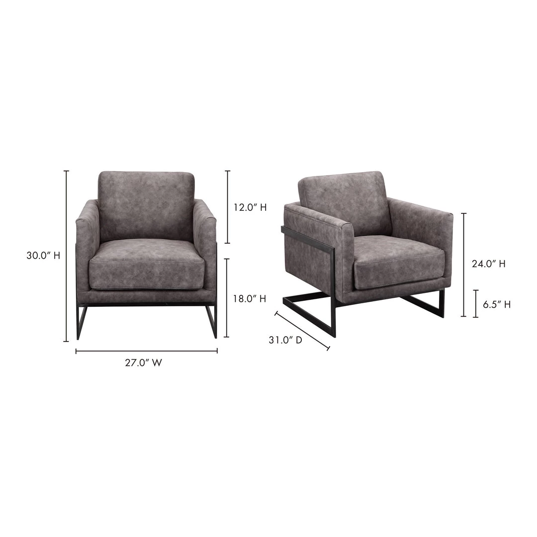 The Luxley club chair combines comfort and functionality with a simplistic modern form with its fully upholstered, grey top-grain leather, deeply comfortable seat, and eye-catching, semi-cantilevered frame design.