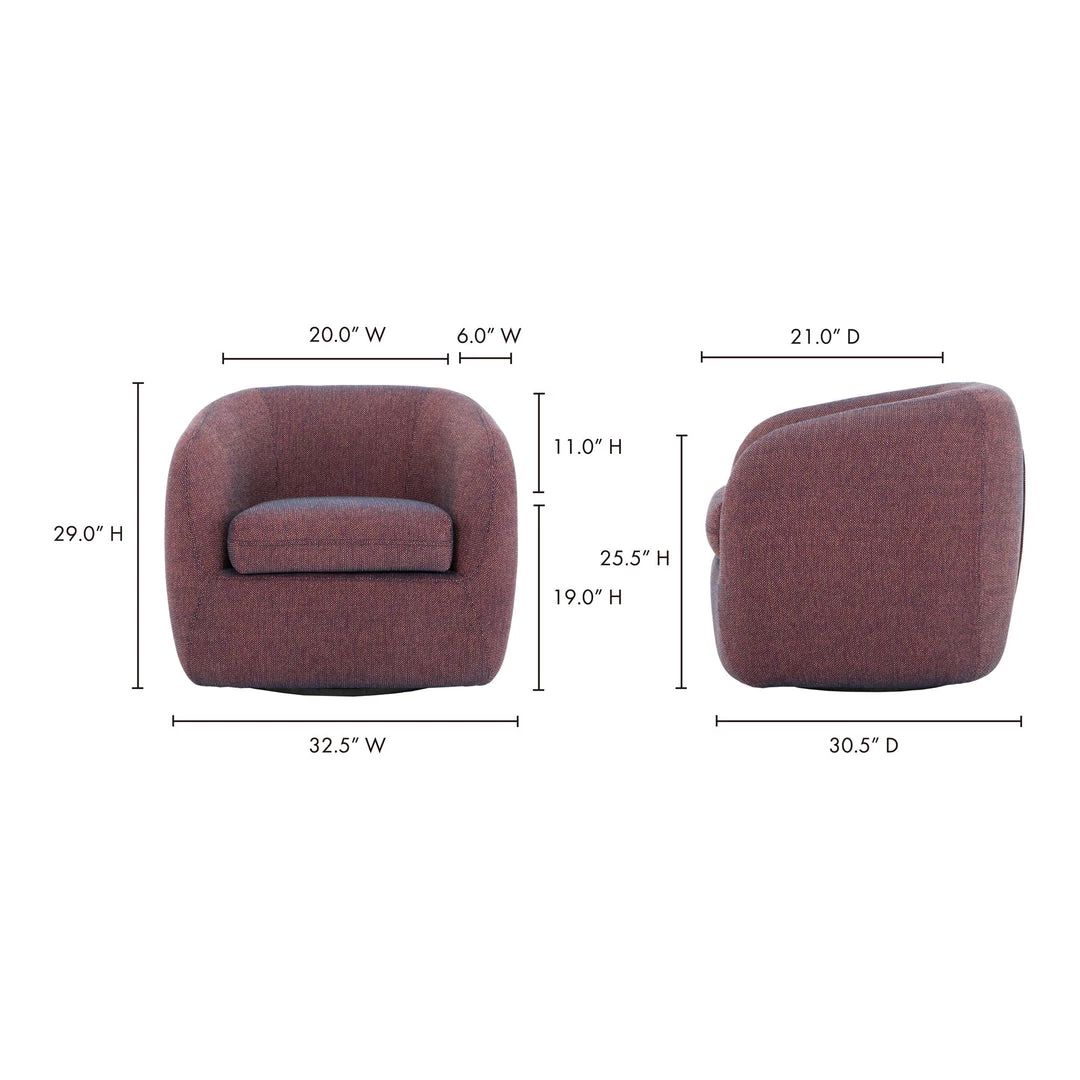 Curl up in the Maurice swivel chair. With rosa orange upholstery, foam filling and solid wood construction, it’ll bring comfortable modern style to your living area.