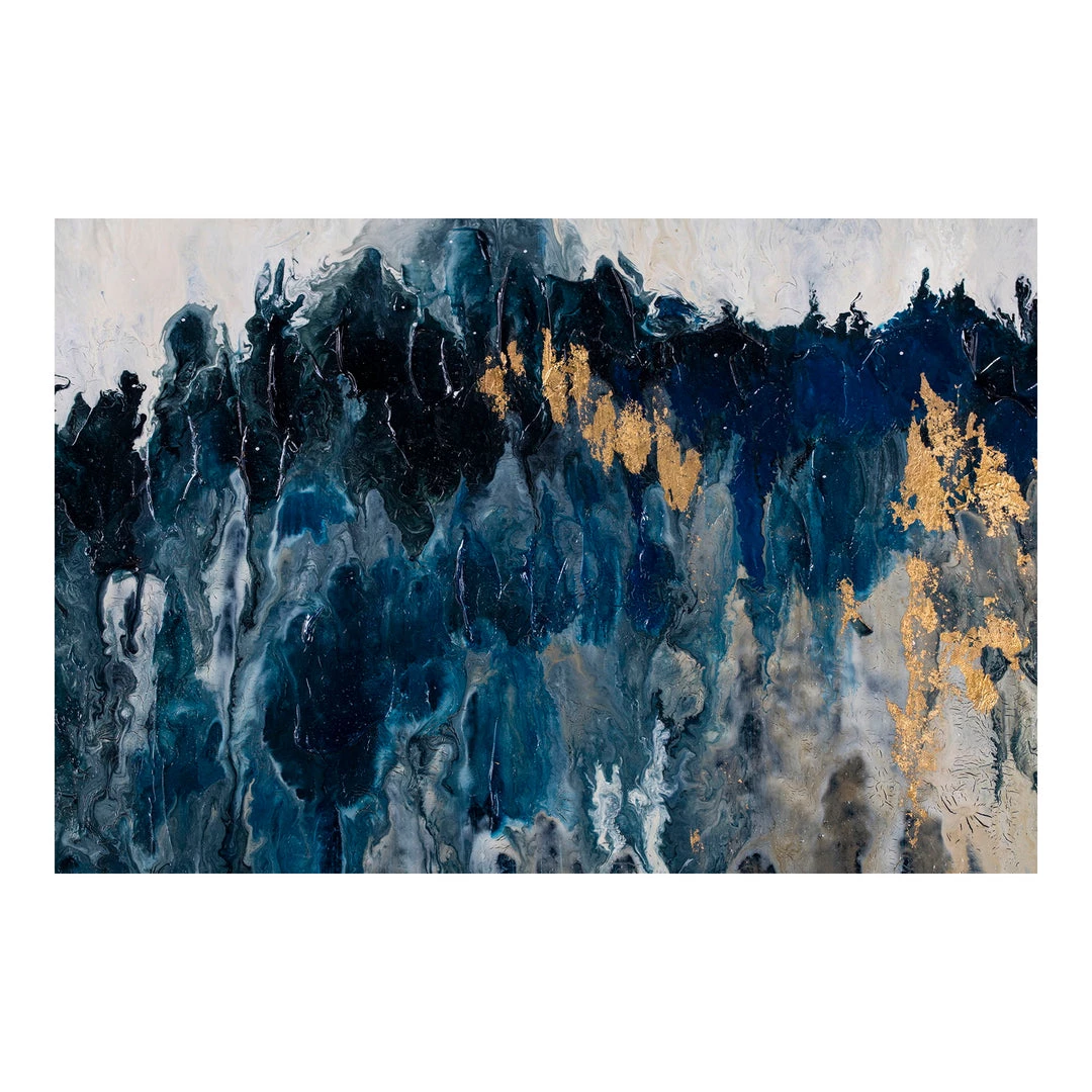 This abstract painting uses calming tones of blue to evoke the feeling of rural hills. A gorgeous piece of wall décor.