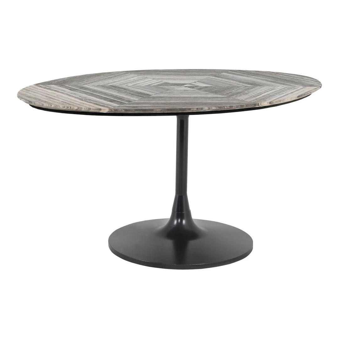 The Nyles dining table comes with hexagonal patterned marble table-top that is finished with a gritty texture. A monochromatic grey finish adds an earthy décor