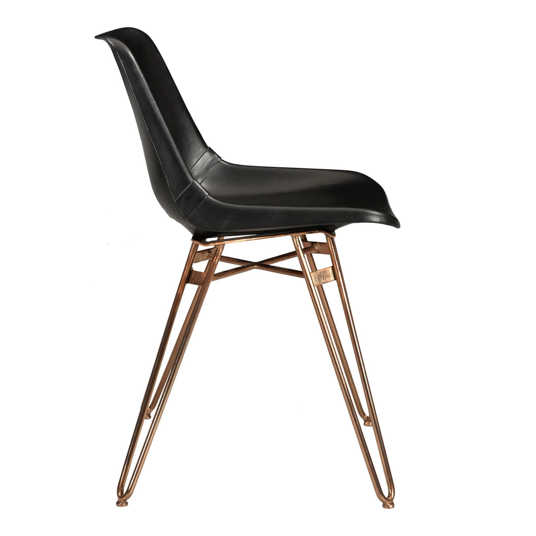 With a solid iron base and black goat leather upholstery, the Omni will give your dining space a modern edge.