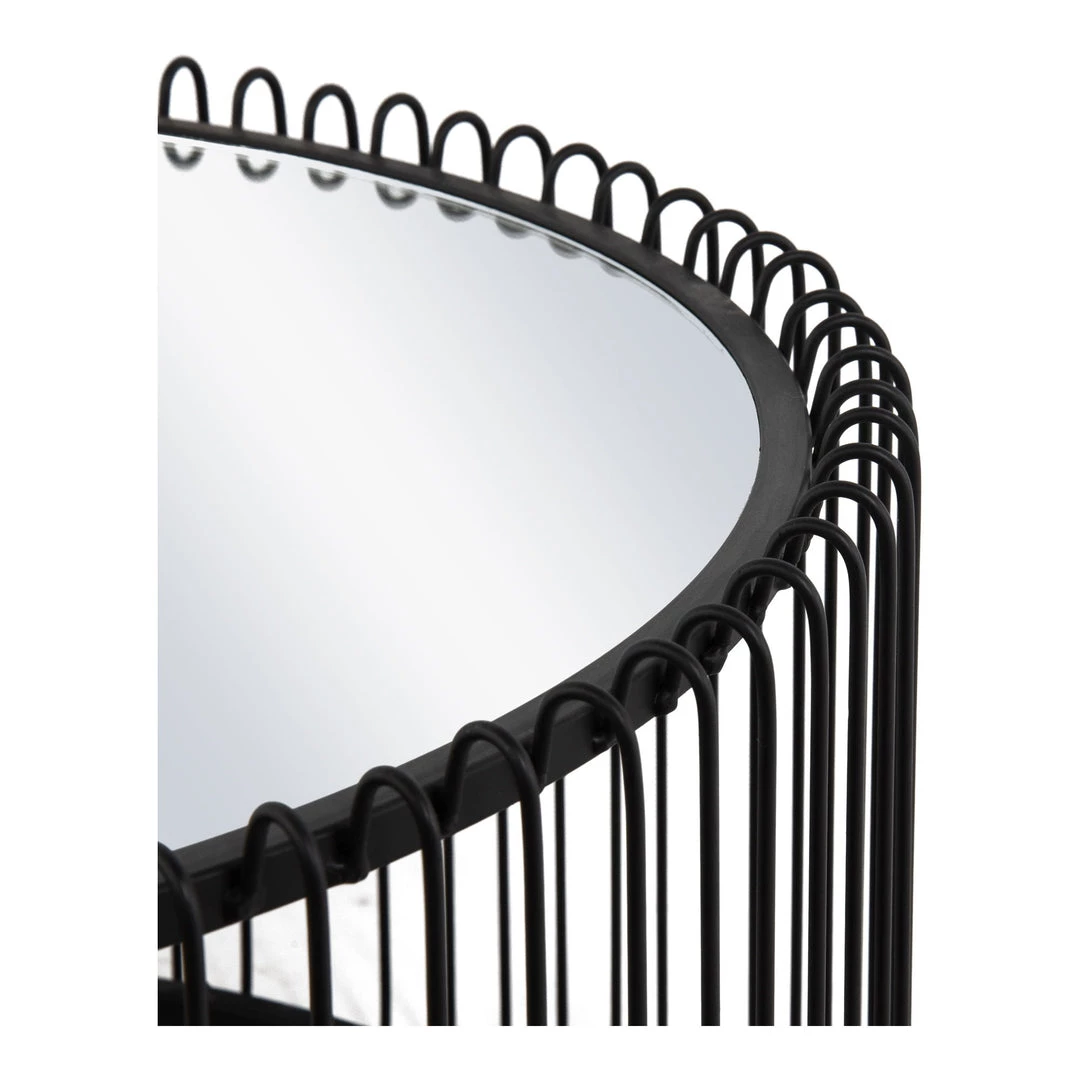 Coiled, contemporary, and sprung with style, this dynamic side table features a mirrored glass tabletop and sturdy, black iron construction that will last for years to come.