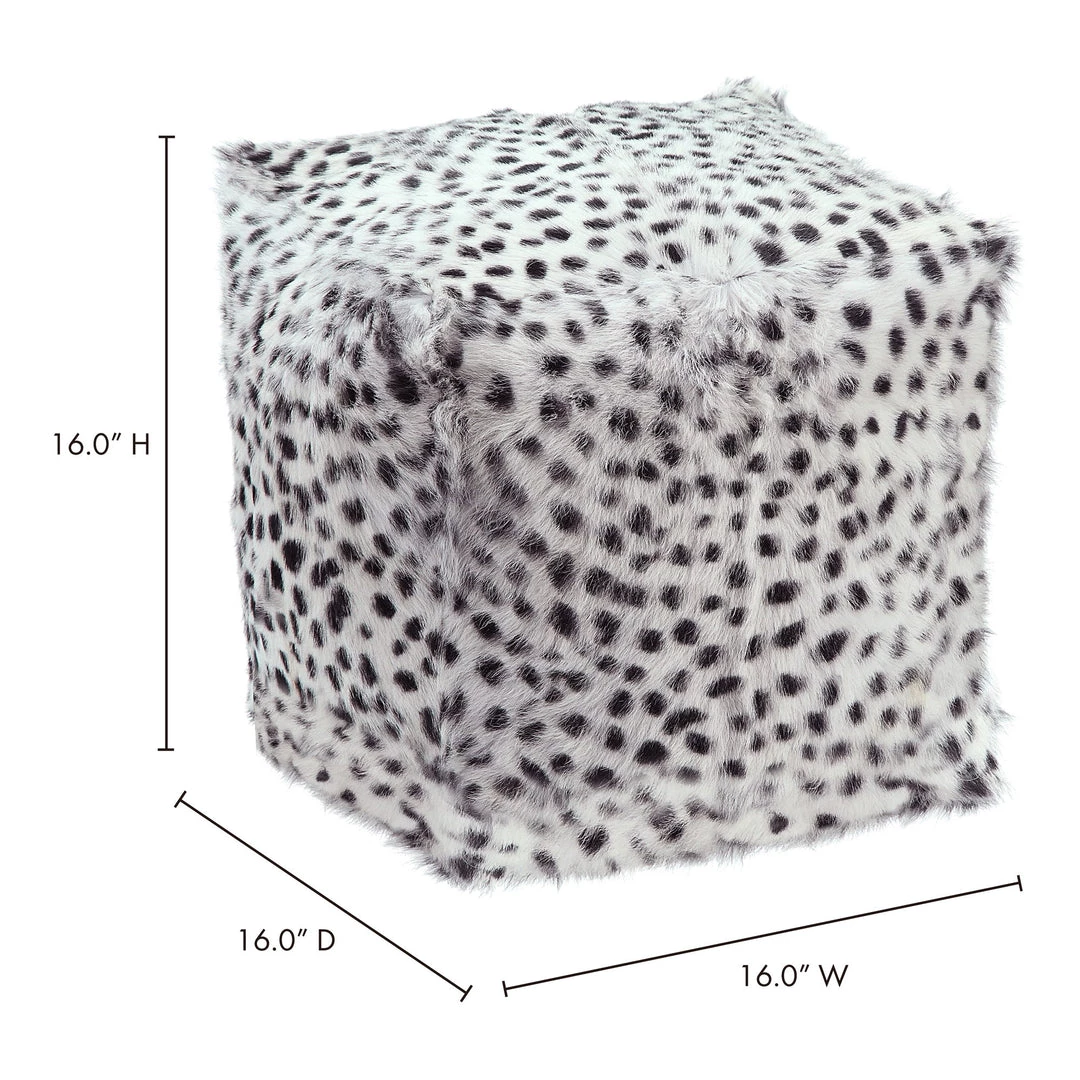 Perfect for adding texture to your living area, this pouf is upholstered in grey spotted goat fur for ultra-softness and chic design.