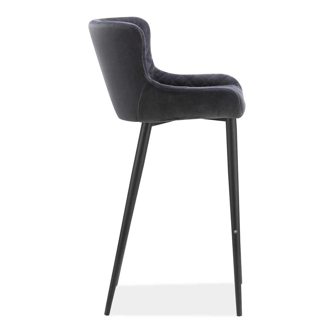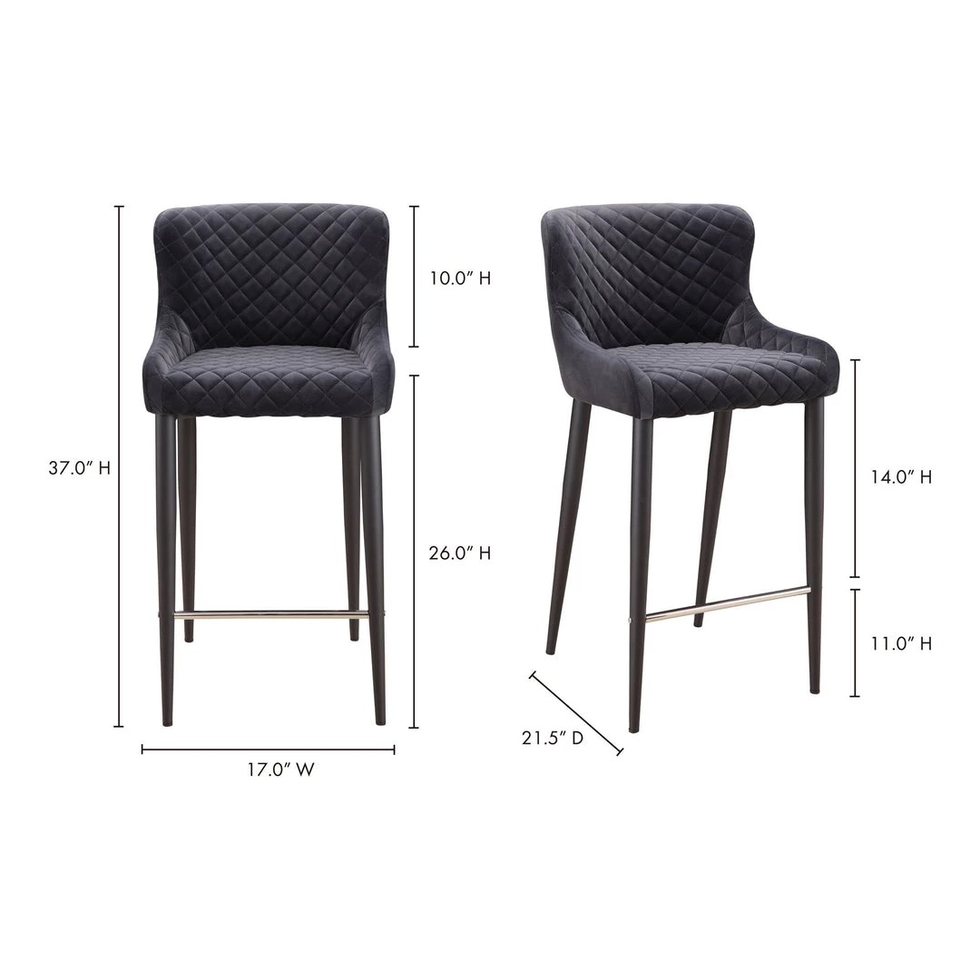 A wide, comfortable seat and diamond tufted grey upholstery make the Etta the ideal counter stool for your dining space.
