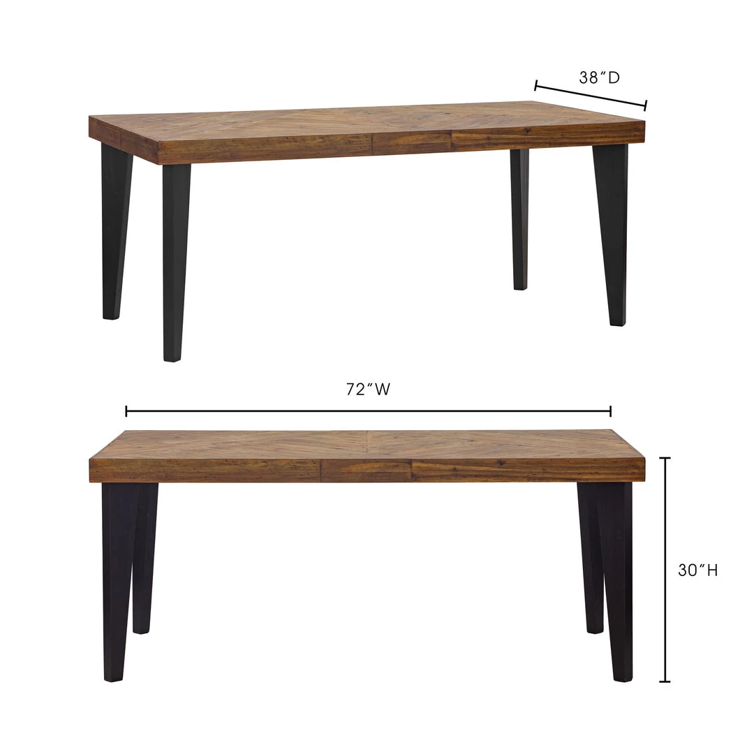 A hand-crafted piece of solid acacia wood rests on top black painted legs to give this dining table a modern yet rustic chic.