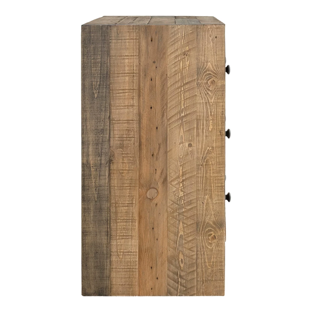 Made of solid reclaimed pine, the rustic, Teigen dresser exhibits sustainability with plenty of storage. Ample amount of table space allows you to keep your favorite trinkets on display, while six spacious drawers will keep your essentials organized.