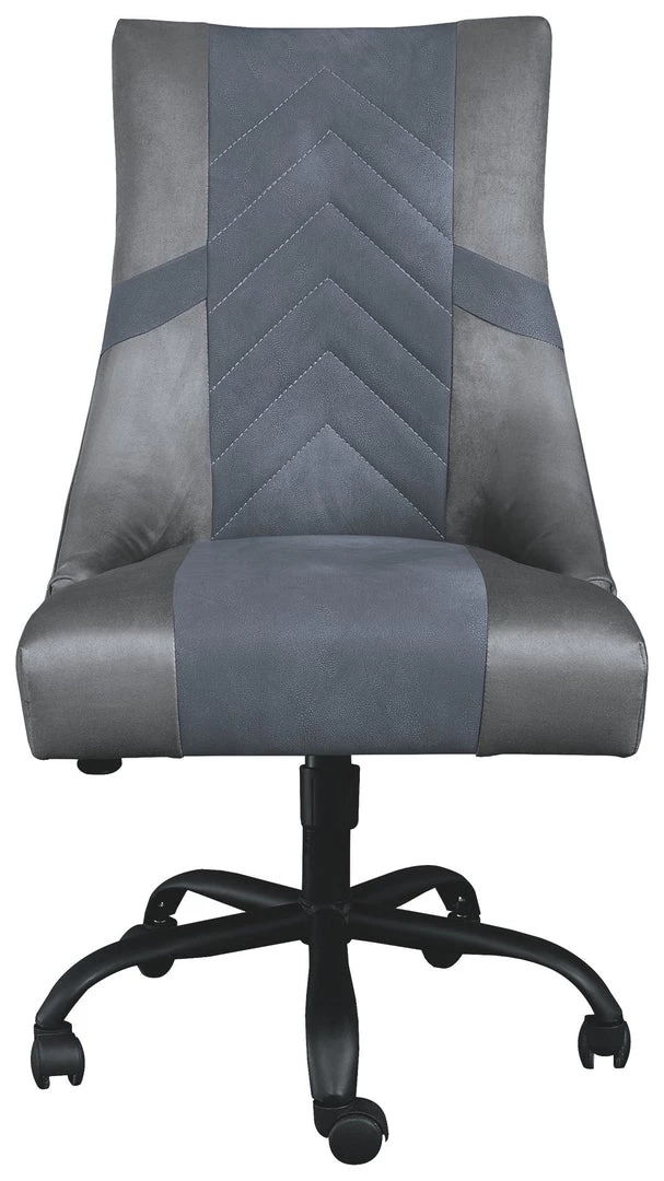 Desk program designed for gaming PC’s. Made with metal frames, a paper laminate with replicated wood grain and engineered wood substrates. Each desk has a large open raceway for power cord management and an LED back light with multiple color options for enhanced gaming experience. Each desk is equipped with a PC stand for easy access. The H700-26 desk features a dual USB charging port located adjacent to a storage cubby for headsets. The H700-28 comes with a custom designed headset hanger for easy storage and a built in electric beverage can cooler. The H700-28 has the USB conveniently located in the cup cooler. The gaming chair features a tilting swivel mechanism and a unique tone-on-tone faux leather upholstery scheme.