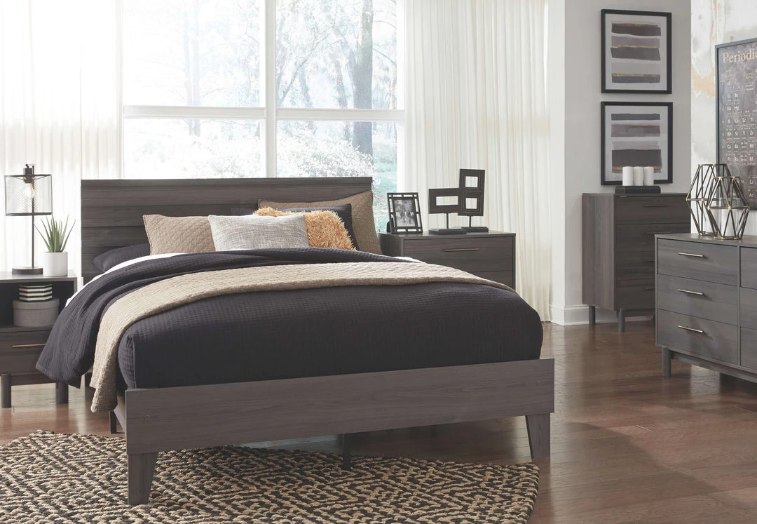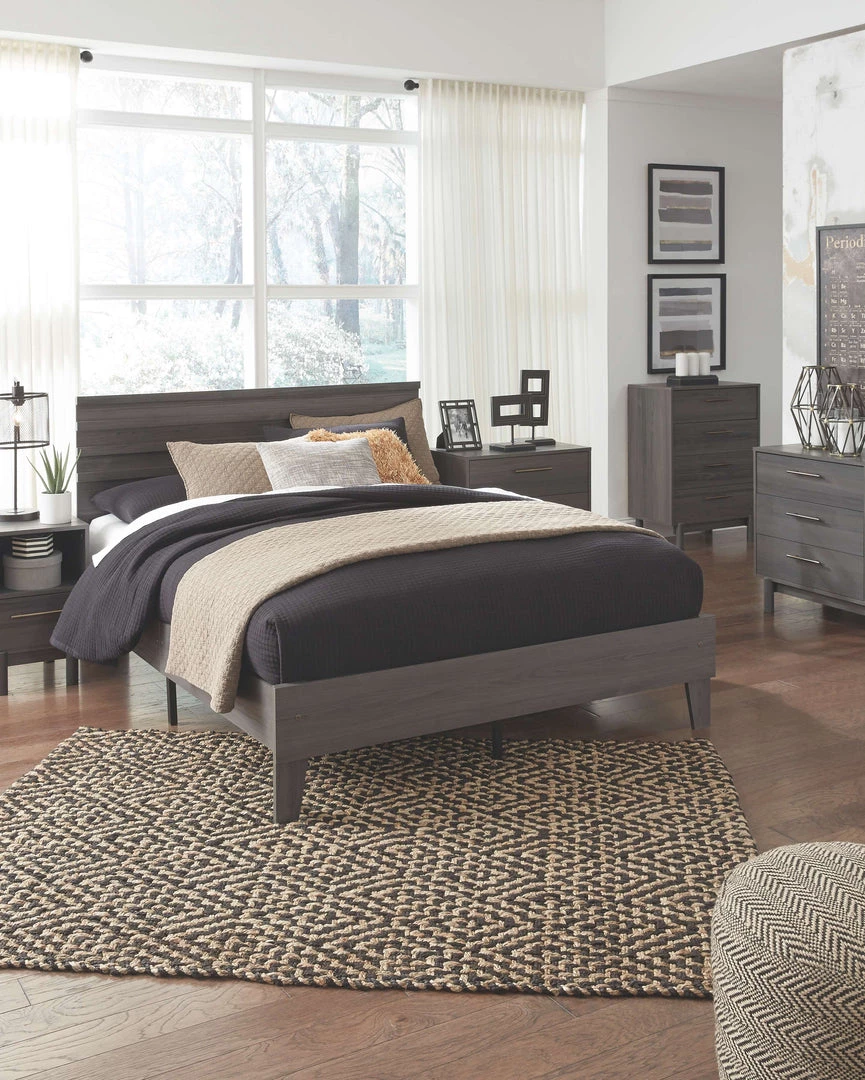 A subtle warm gray finish over replicated walnut wood grain with authentic touch. Cases are accented with burnished gold colored handles. Spacious drawers with ball bearing glides offer a smooth opening and closing of the drawer. Night stands feature open shelving. Vinyl wrapped drawer sides and back for extra durability. Platform beds (EB1011-112,113) no additional foundation is needed. All cases feature cylindrical legs. Assembly required. Safety is a top priority, clothing storage units are designed to meet the most current standard for stability, ASTM F 2057 (ASTM International). Drawers extend out to accommodate maximum access to drawer interior while maintaining safety. These pair well with EA1011 and EW1011.