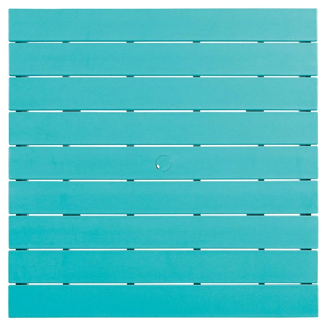 Raise the bar on outdoor living with this dining table. Crafted for style and durability, it caters with a standout two-tone look that pairs a light turquoise and white for twice the interest. The table’s counter height design elevates the aesthetic. An umbrella hole lets you throw some shade on your outdoor living space.