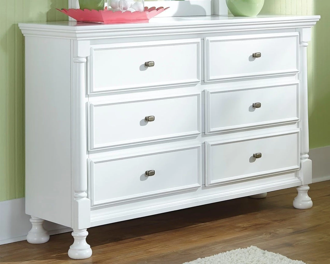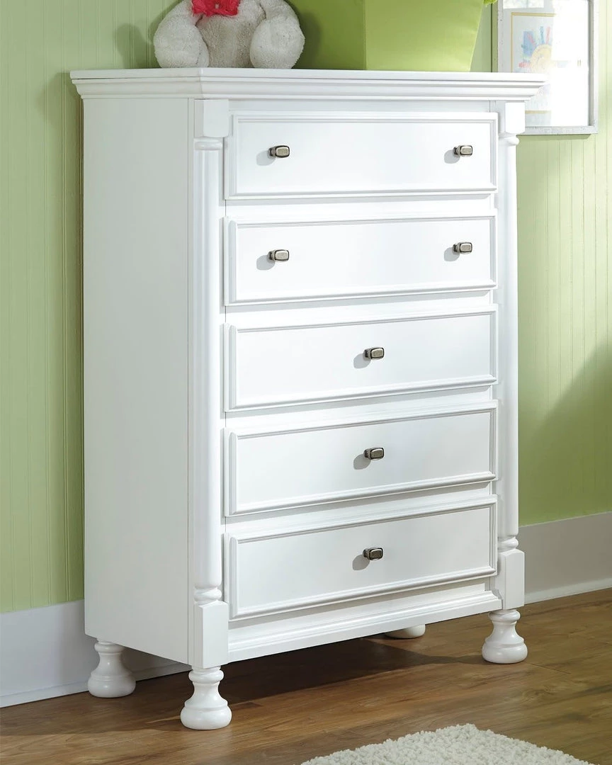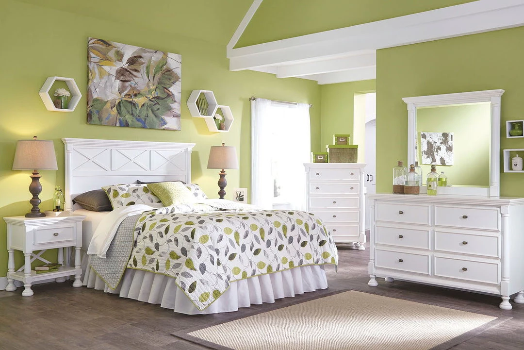 The beauty of cottage design shines with the bright white durable finish along with the stylish ’X’ motif and half rounded pilasters adorning the bed and case pieces making the ’Kaslyn’ bedroom collection the perfect way to create a cottage getaway within your own home.