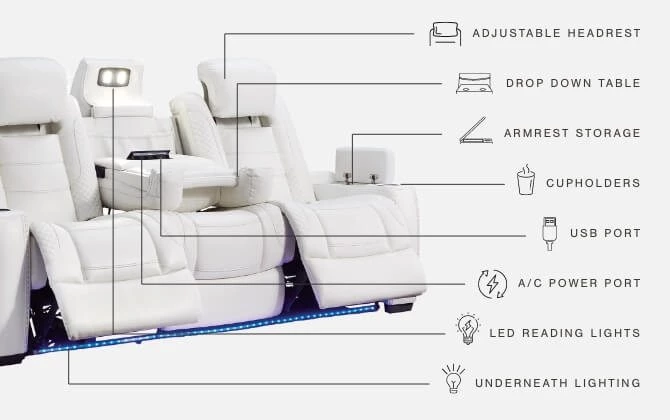 Party – White – Pwr Rec Sofa With Adj Headrest