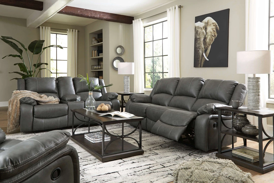 Calderwell – Gray – DBL Rec Loveseat w/Console