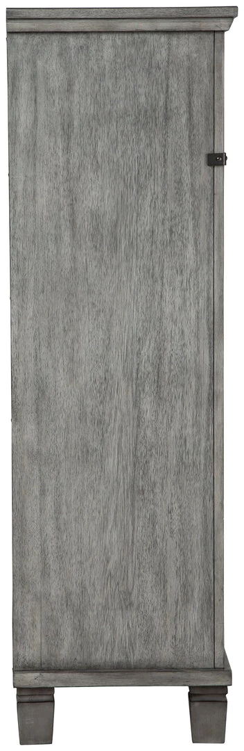 What’s old is what’s new with this chest. Serving up a fresh look in urban farmhouse style, the eclectic piece features a light weathered gray finish with dark aged bronze-tone bar pulls and metal straps for a casually cool sensibility. Profiled drawer frames, thick-profiled top moulding and tapered legs are the earmarks of timeless design.