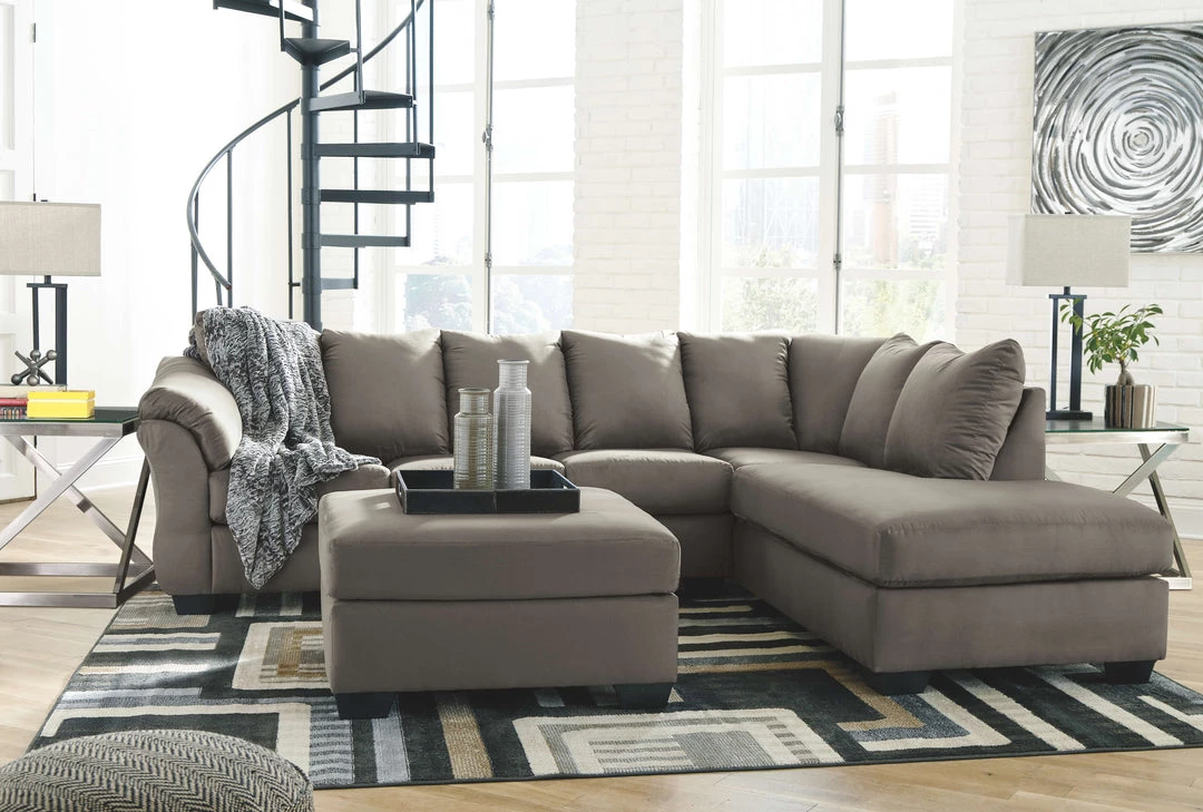 With the exciting contemporary style of the sweeping padded arms and plush pillow back design, the sleek beauty of the —Darcy-Caf— upholstery collection is sure to awaken the d—cor of any home environment while offering the comfort that you have been searching for.