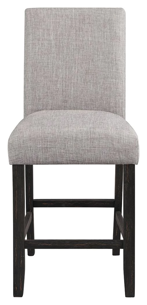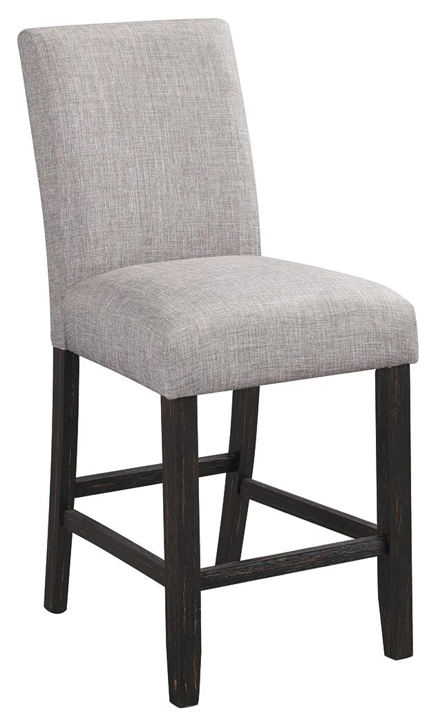 With its fashion-forward take on casually modern styling, this counter height bar stool is a feast for the sense. A distressed and heavily textured dark brown finish infuses it with wonderfully weathered charm, while gray upholstery in a crosshatch pattern has a sense of timeless refinement. Its clean-lined Parsons design is a classic choice that works so well with a myriad of aesthetics.