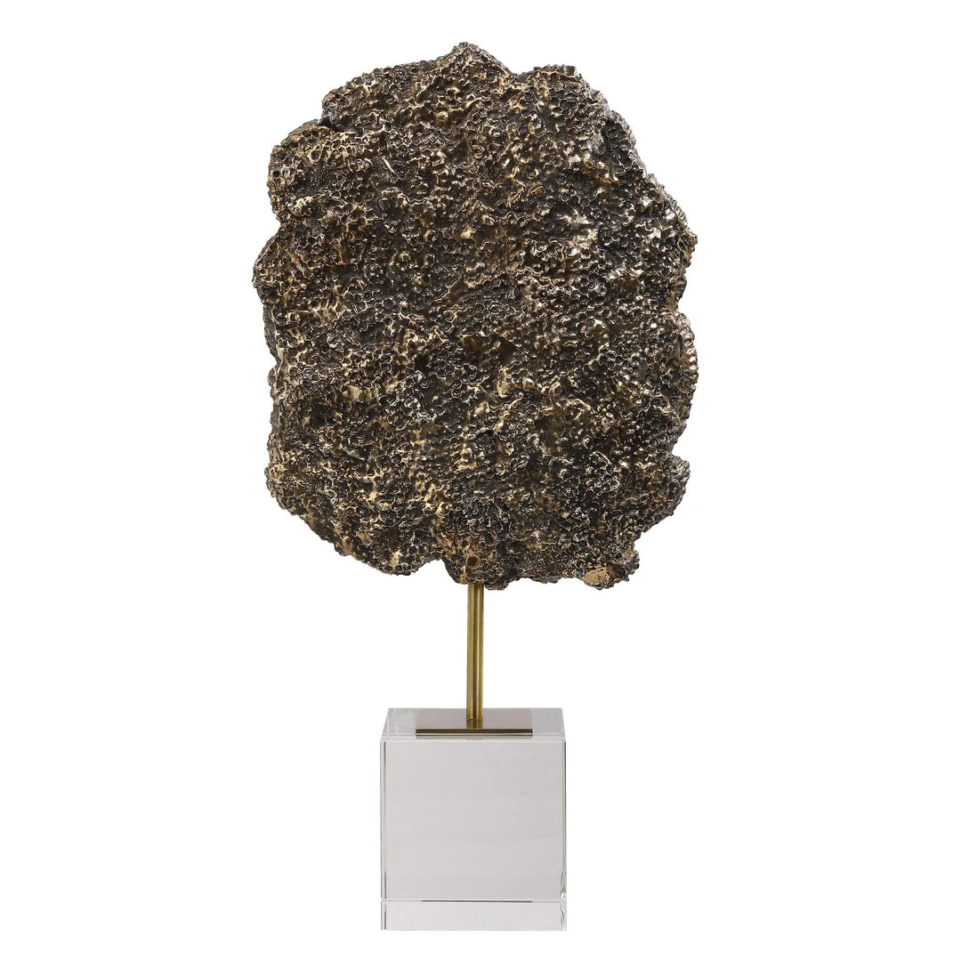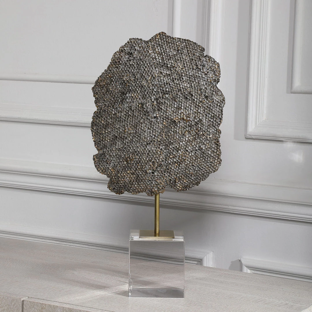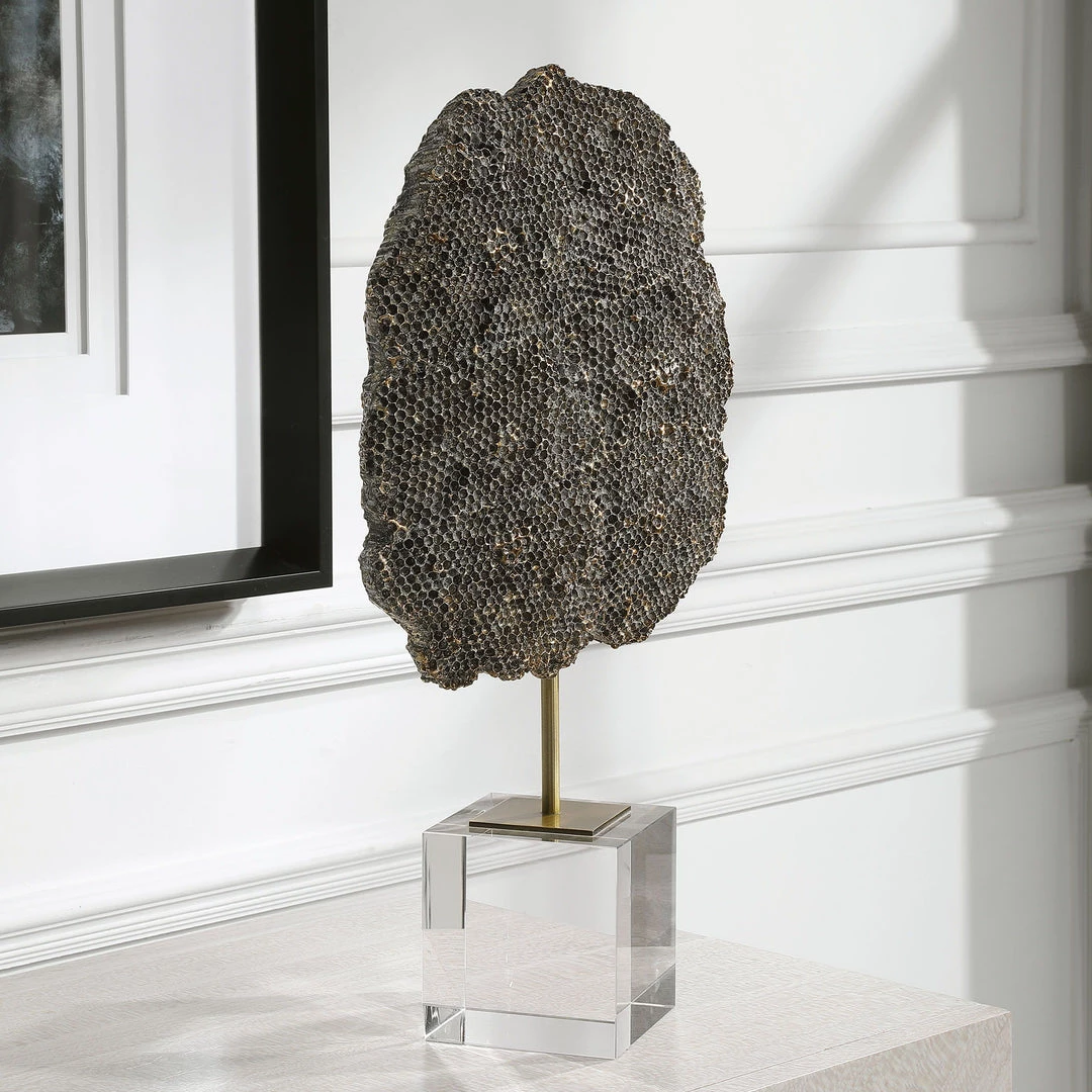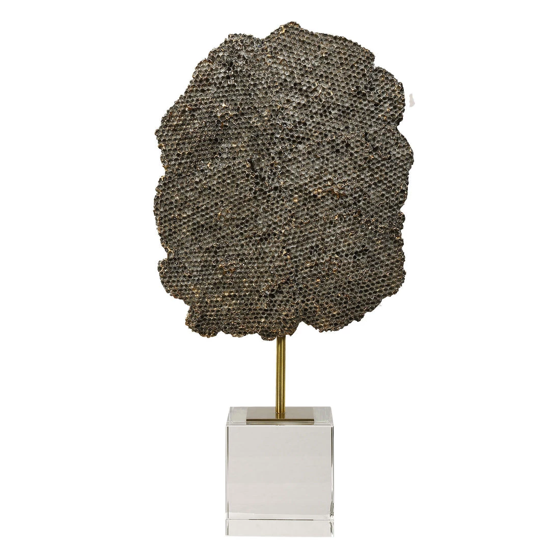 Inspired By A Natural Honeycomb, This Sculpture Showcases Intricately Carved Details Finished In Antique Gold And Accented By A Crystal Foot.