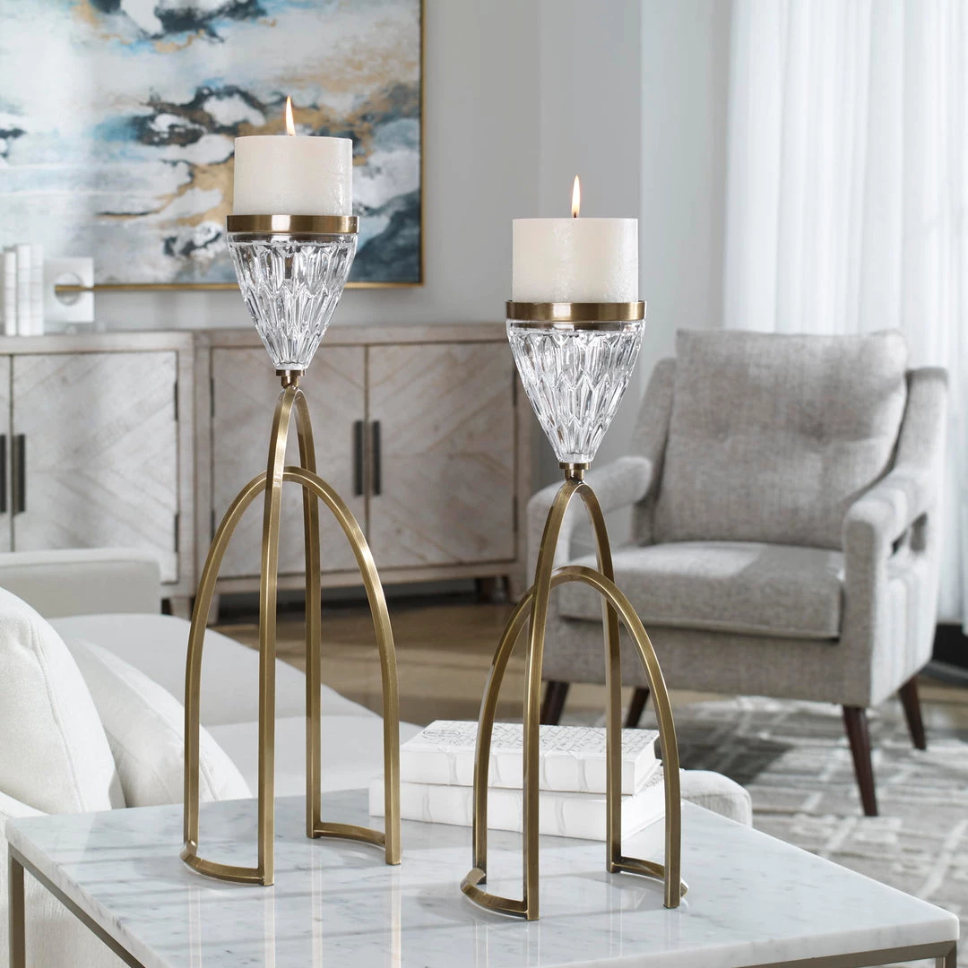 Uttermost Carma Bronze And Crystal Candleholders, S/2