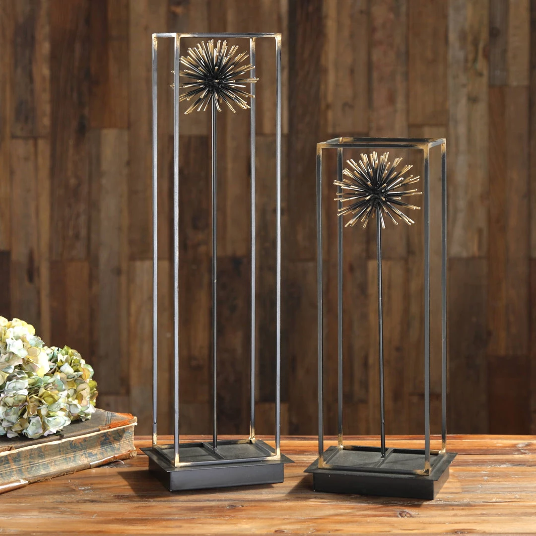 An Interpretation In Metal Of Flowering Dandelions Encased In Steel Frames, Finished In An Aged Black With Golden Highlights. Sizes: Sm-6x16x5, Lg-6x21x5