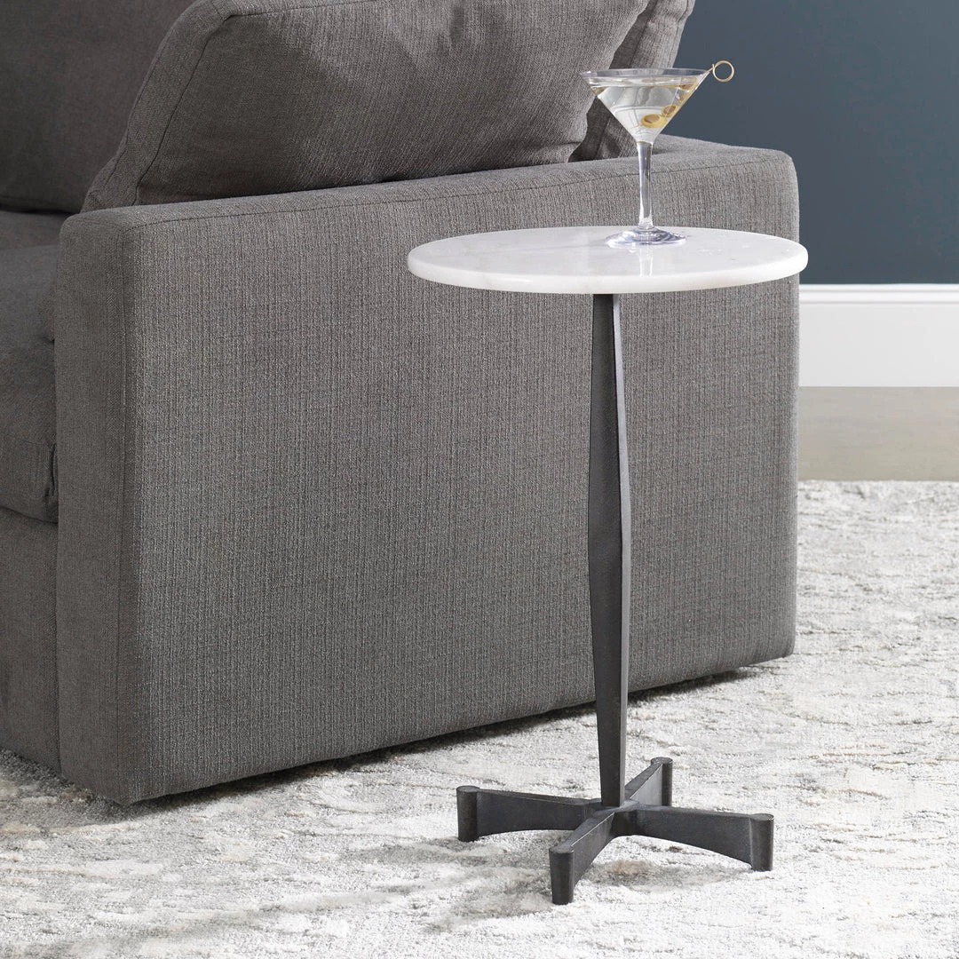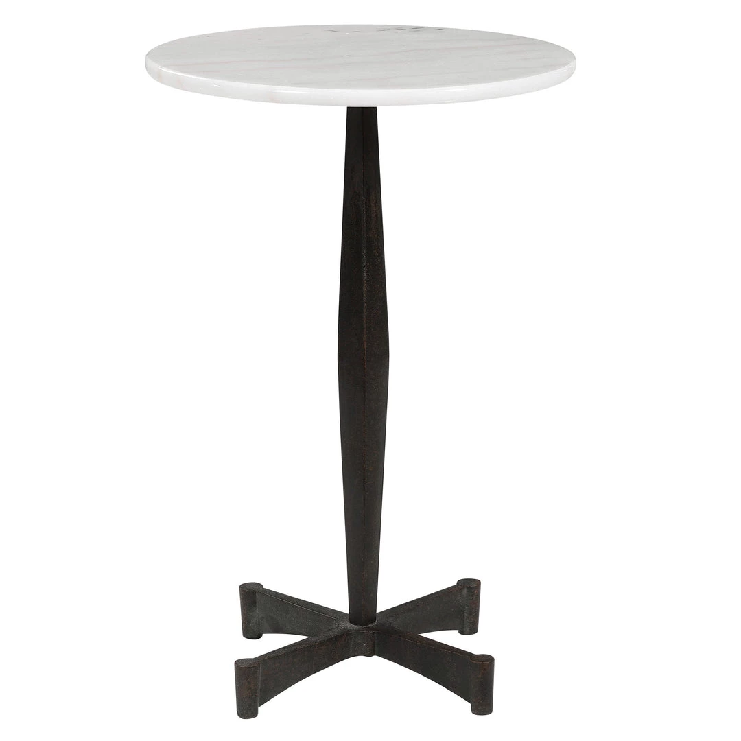 The Perfect Landing Spot For A Drink Or Book, This Drink Table Features A Solid Steel Base Finished In Aged Iron Accented By An Elegant White Marble Top. True To The Nature Of Natural Materials, Each Piece Will Have Unique Marbling And Veining Throughout.