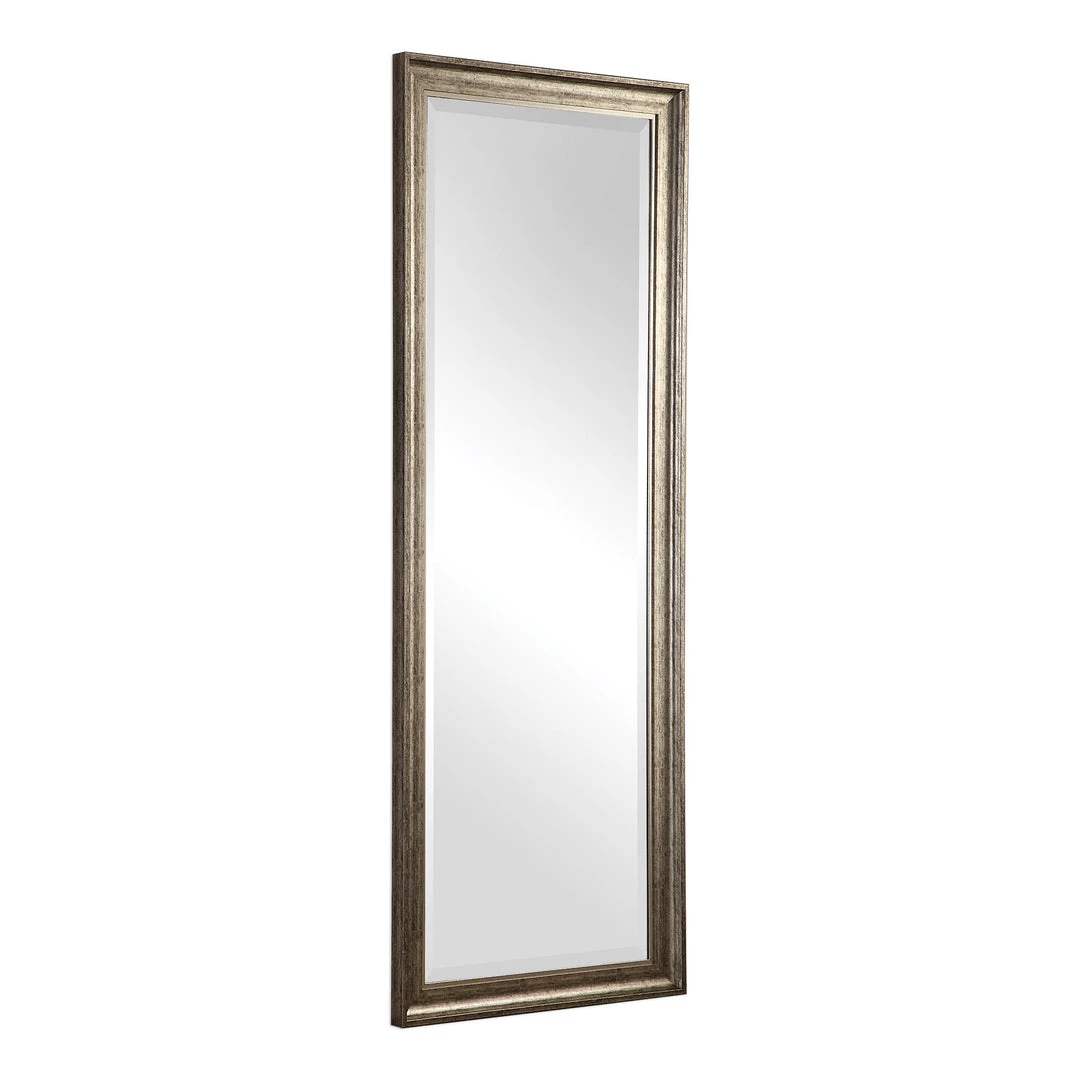 This Versatile Piece Features A Sloped Surface With A Metallic, Burnished Silver Wrapped Finish, Accented With A Coordinating Brighter Silver Inner Edge. Mirror Features A Generous 1 1/4″ Bevel And May Be Hung Horizontal Or Vertical.