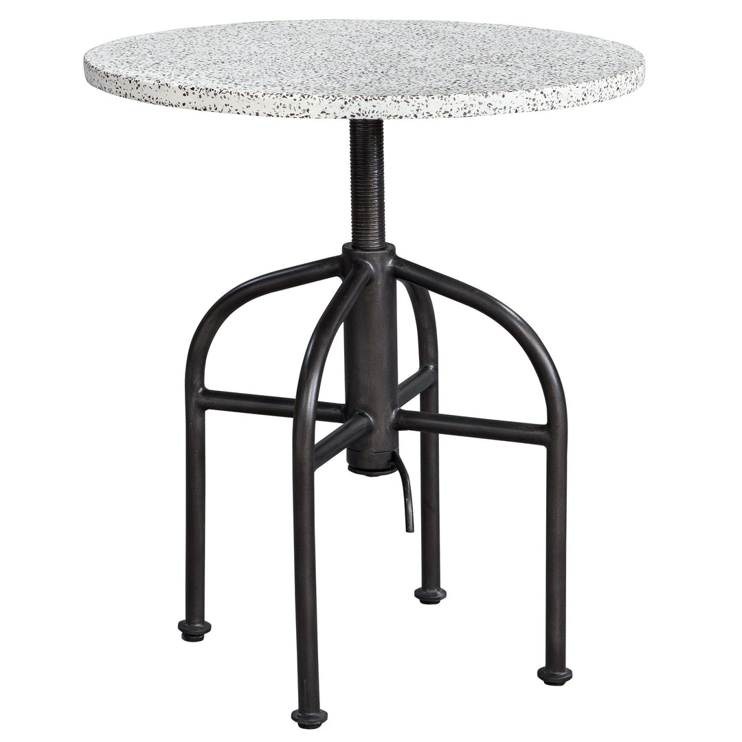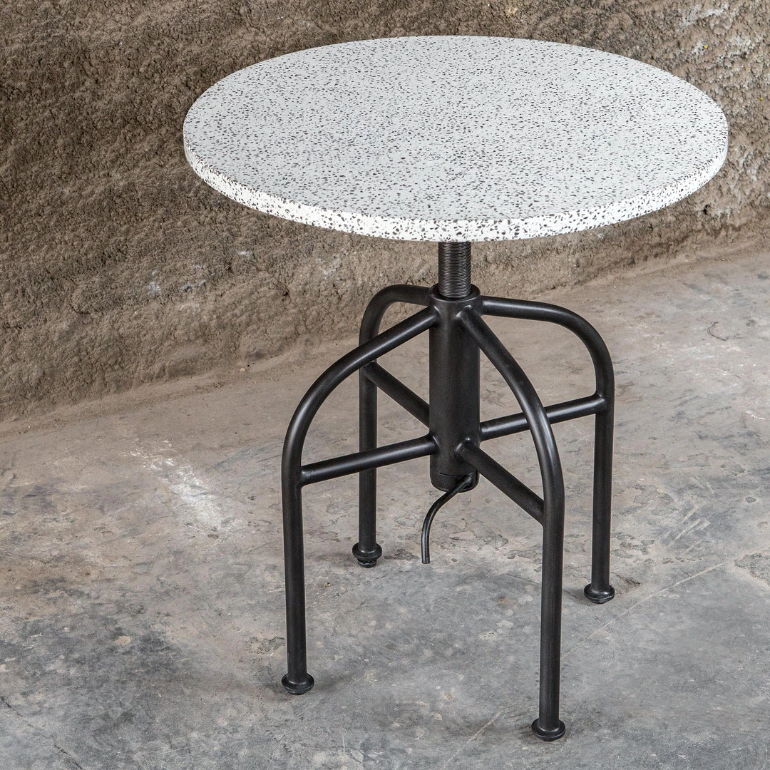 Inspired By Scandinavian Style, This Adjustable Height Accent Table Features A White And Gray Flecked Terrazzo Stone Top, On An Industrial Style Metal Base Finished In Matte Black. Adjusts From 19-24″ Height.