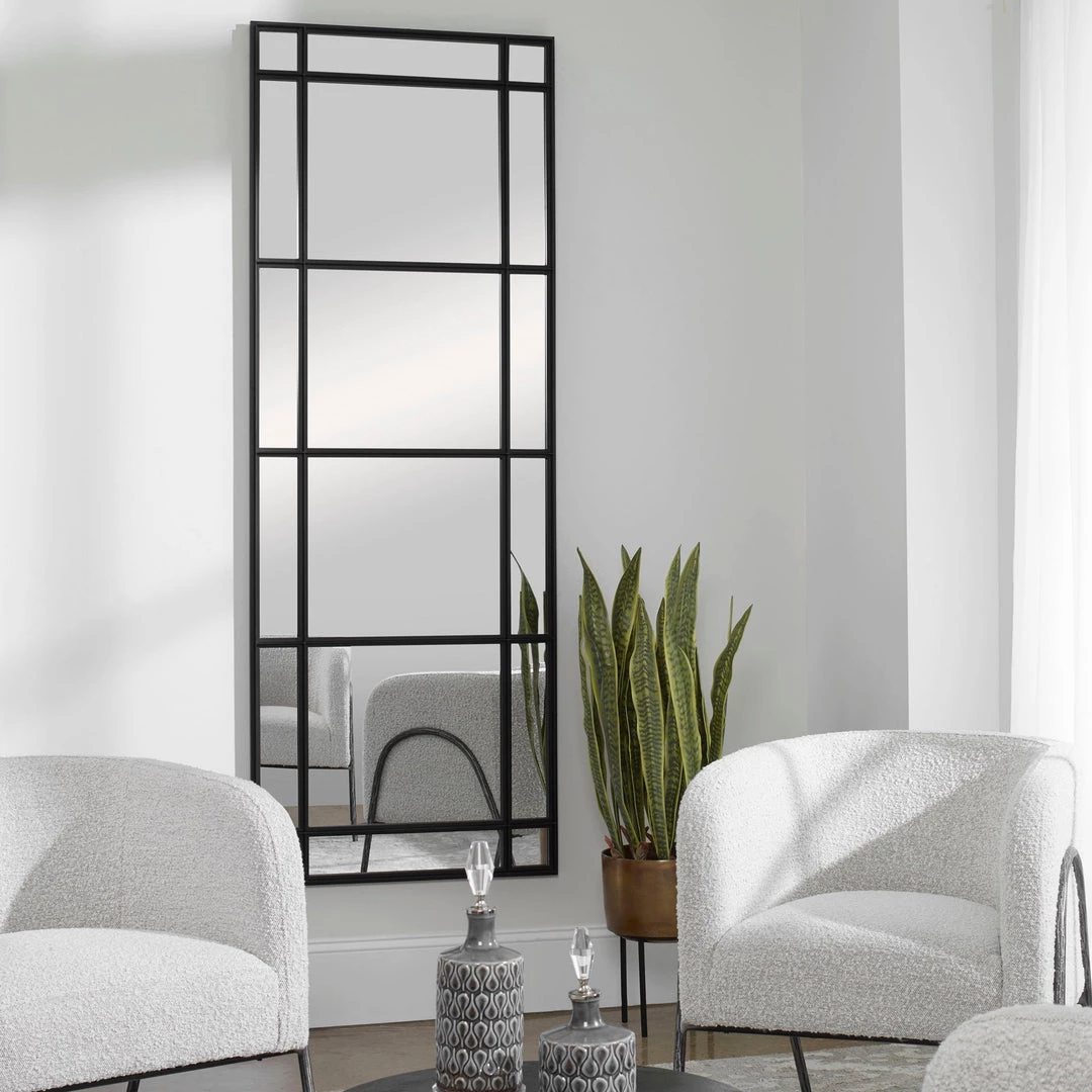 This Mirror Features A Heavy Iron Frame With Deep Channels Inspired By Old Warehouse Windows, Finished In Satin Black. May Be Hung Horizontal Or Vertical.