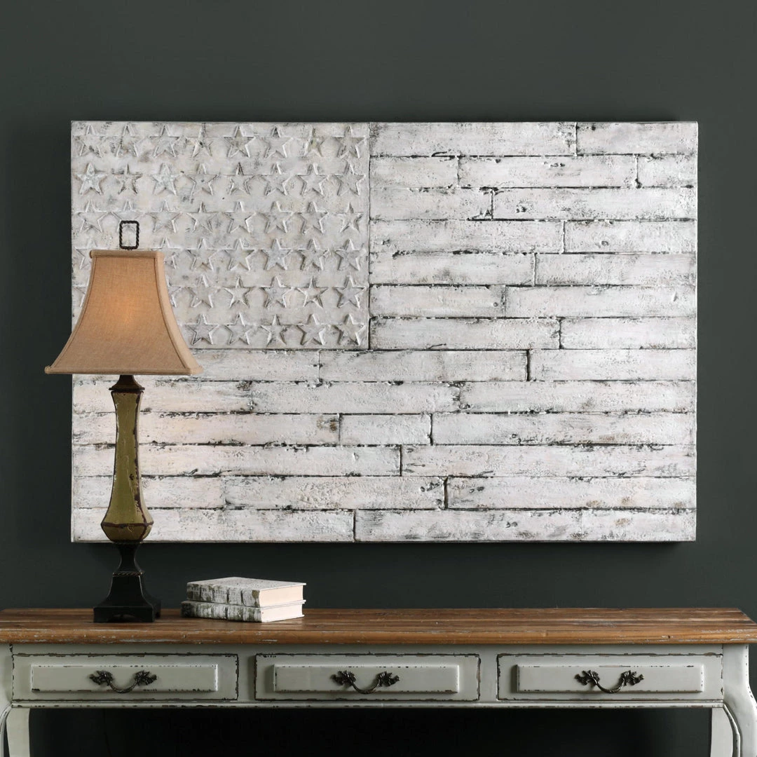 This Hand Painted, Patriotic Artwork Is Created From Sculpted Foam Board, Giving It A 3-dimensional Effect. Finished In A Distressed White, The Foam Is Attached To Stretched Canvas And Applied To Wooden Stretchers. Due To The Handcrafted Nature Of This Artwork, Each Piece May Have Subtle Differences.