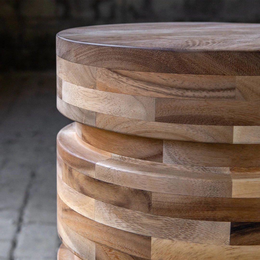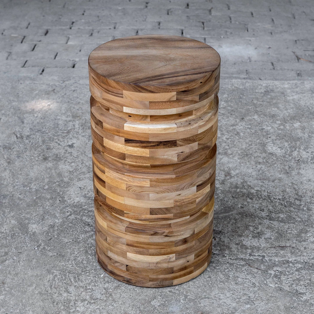 Showcasing The Beauty Of Monochromatic Natural Tones, This Drink Table Features Solid Acacia Wood Pieces With Asymmetrically Placed Cutouts, Creating A Perfect Landing Spot For A Glass Or Book.