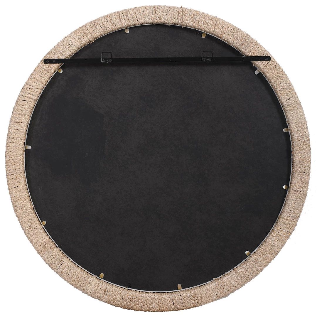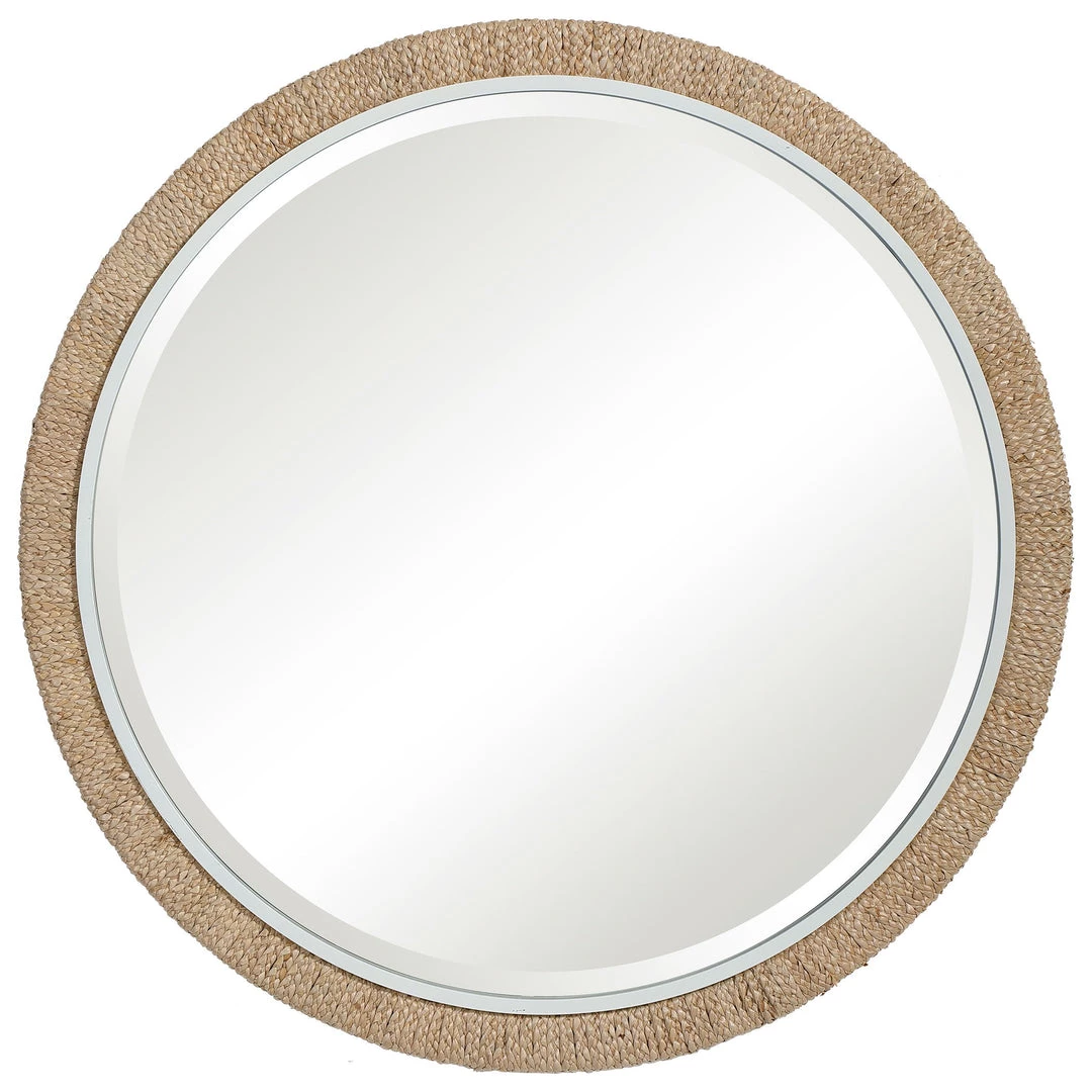 Influenced By Modern Coastal Style, This Round Mirror Has A Braided Banana Leaf And Matte White Frame Exuding A Light And Airy Feel. The Piece Is Accented By A Generous 1 1/4″ Bevel.