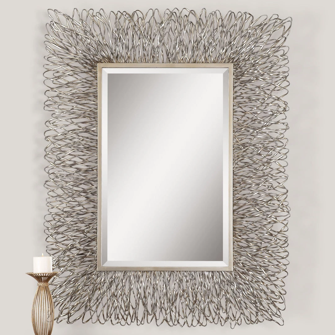 This Decorative Mirror Features A Hand Forged Metal Frame With A Silver Finish And Light Champagne Highlights. Mirror Has A Generous 1 1/4″ Bevel And May Be Hung Horizontal Or Vertical.