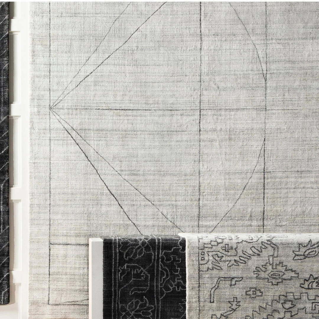 Hand Knotted Viscose In A Medium Cut Pile With Lustrous White And Charcoal Tones, Featuring A Contemporary Design In Contrasting Black.