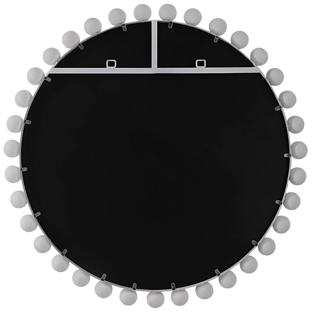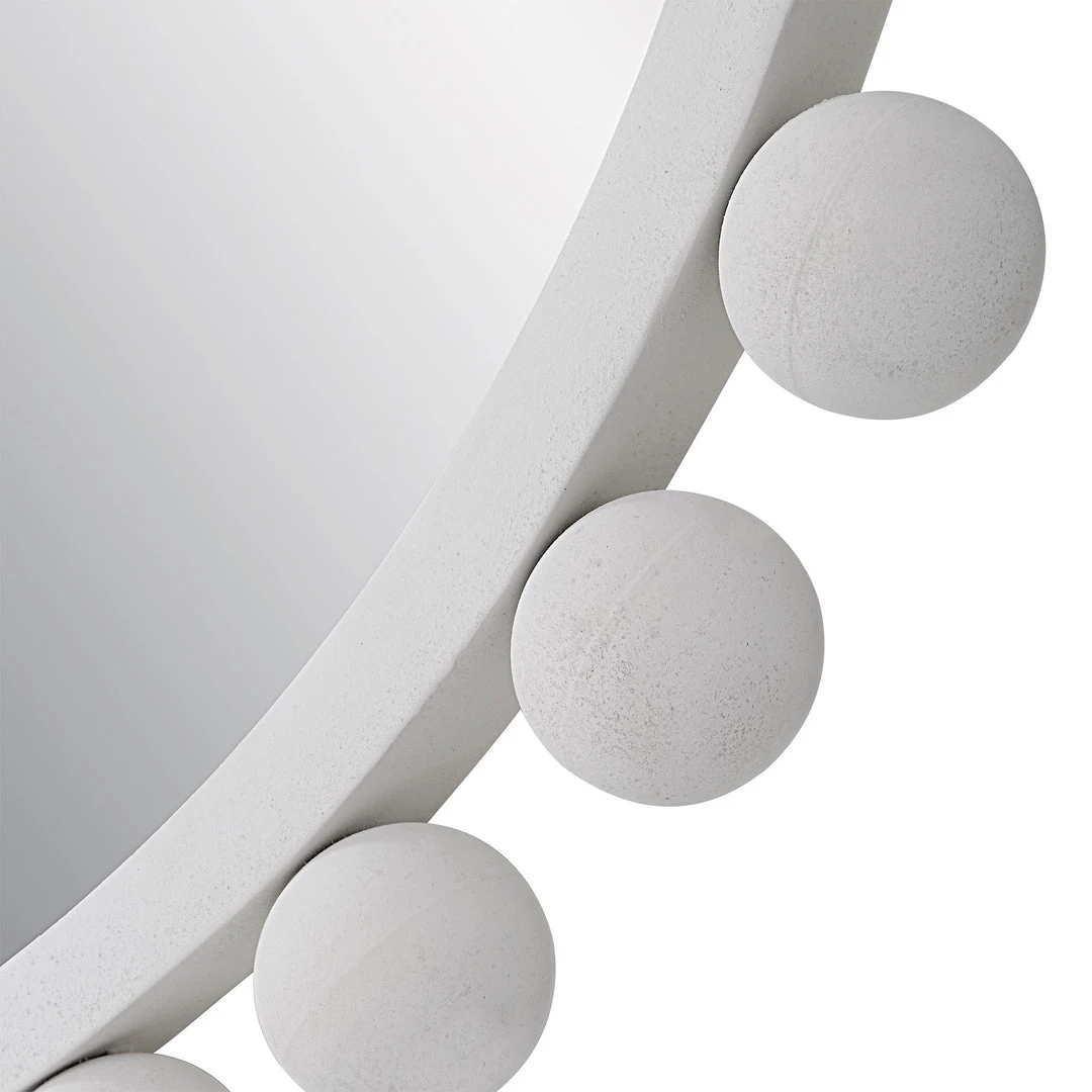 This Eye-catching Round Mirror Adds An Upscale Look And Sophisticated Style To Any Room By Showcasing Smooth Iron Spheres That Embellish A Sleek Inner Frame, Finished In A Clean Matte White.
