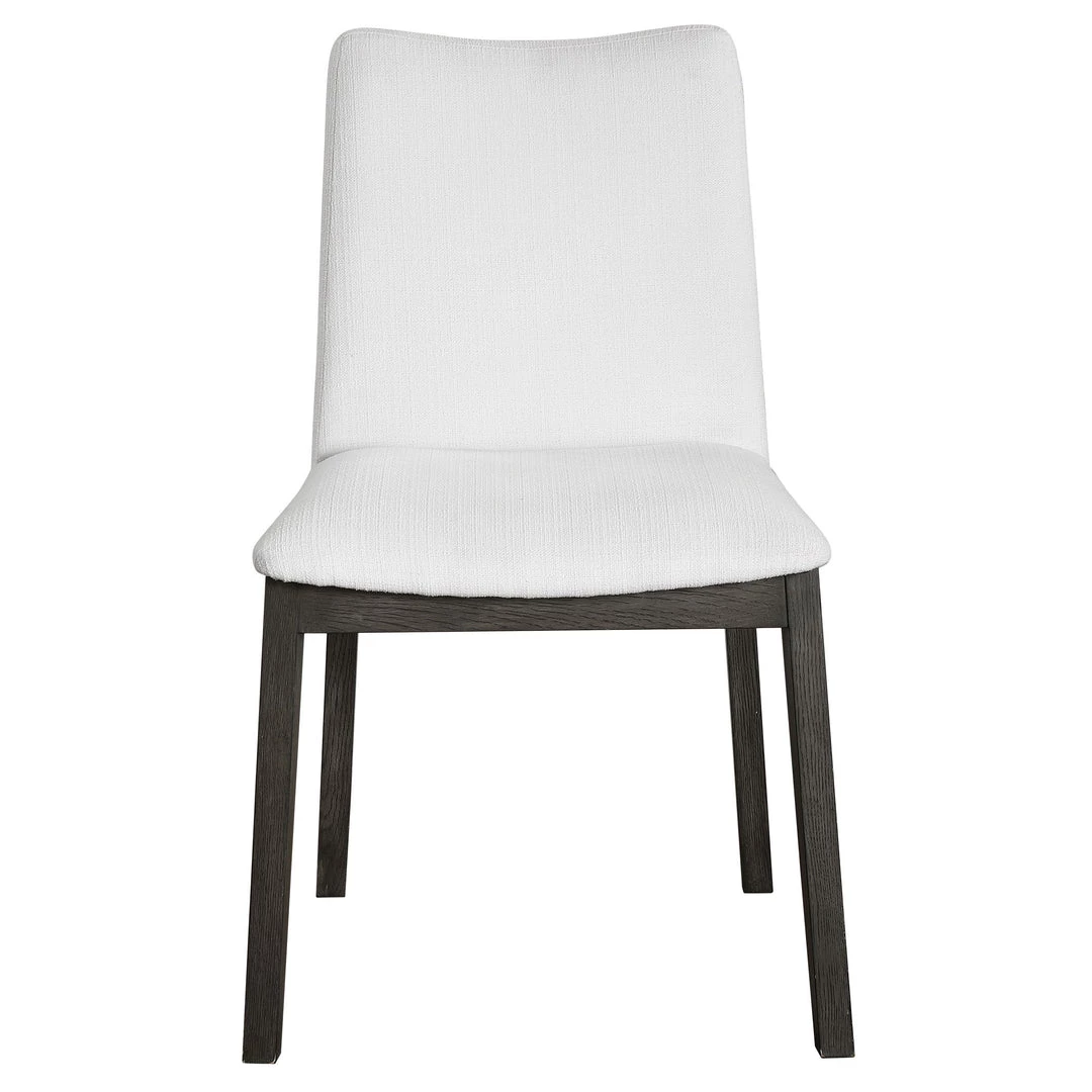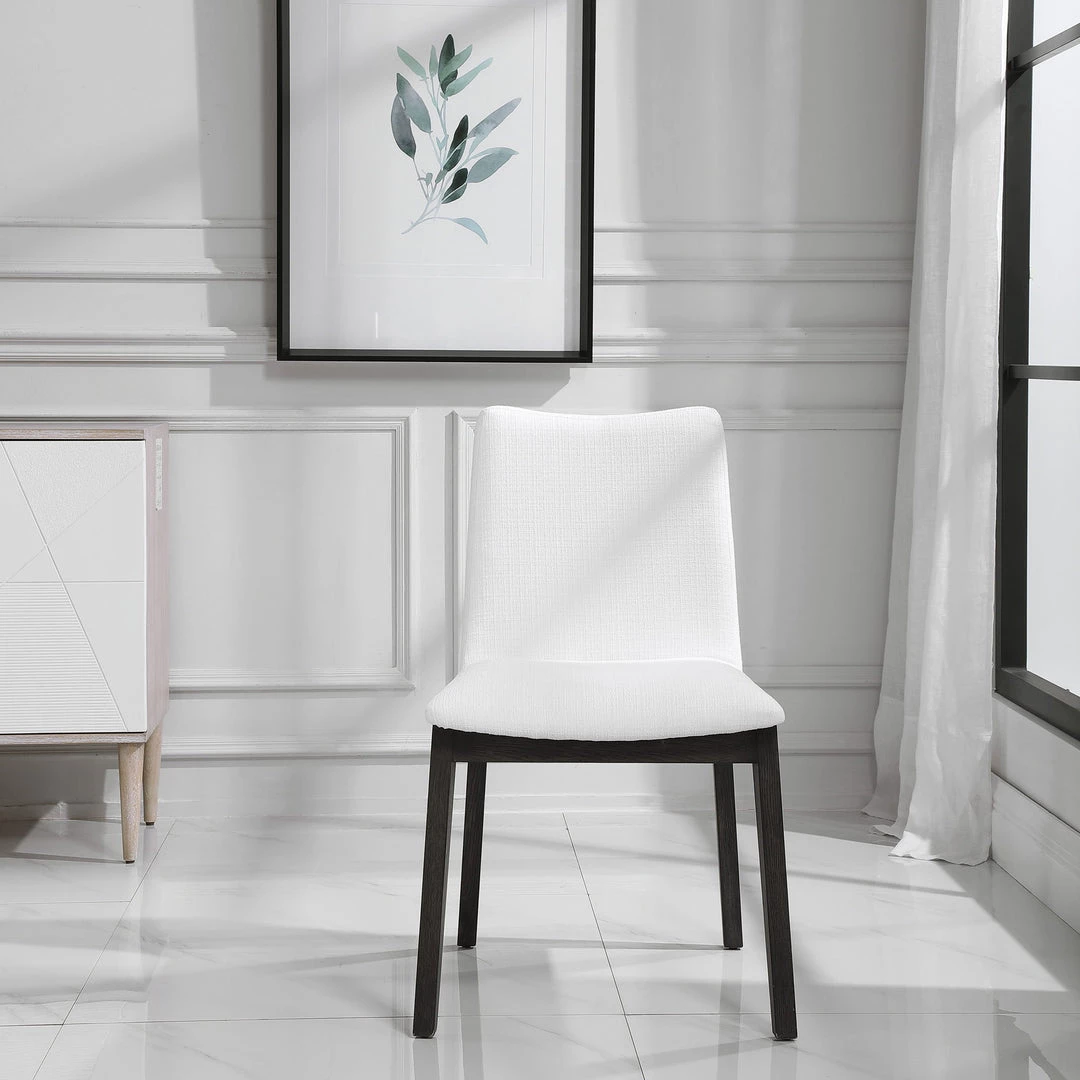 Gently Sloped Padded Seat In A Crisp White Polyester Blend Fabric With A Protected Finish That Resists Soiling And Stains. Rests Within A Solid Oak Wood Frame Finished In Dark Espresso. Seat Height Is 20″.
