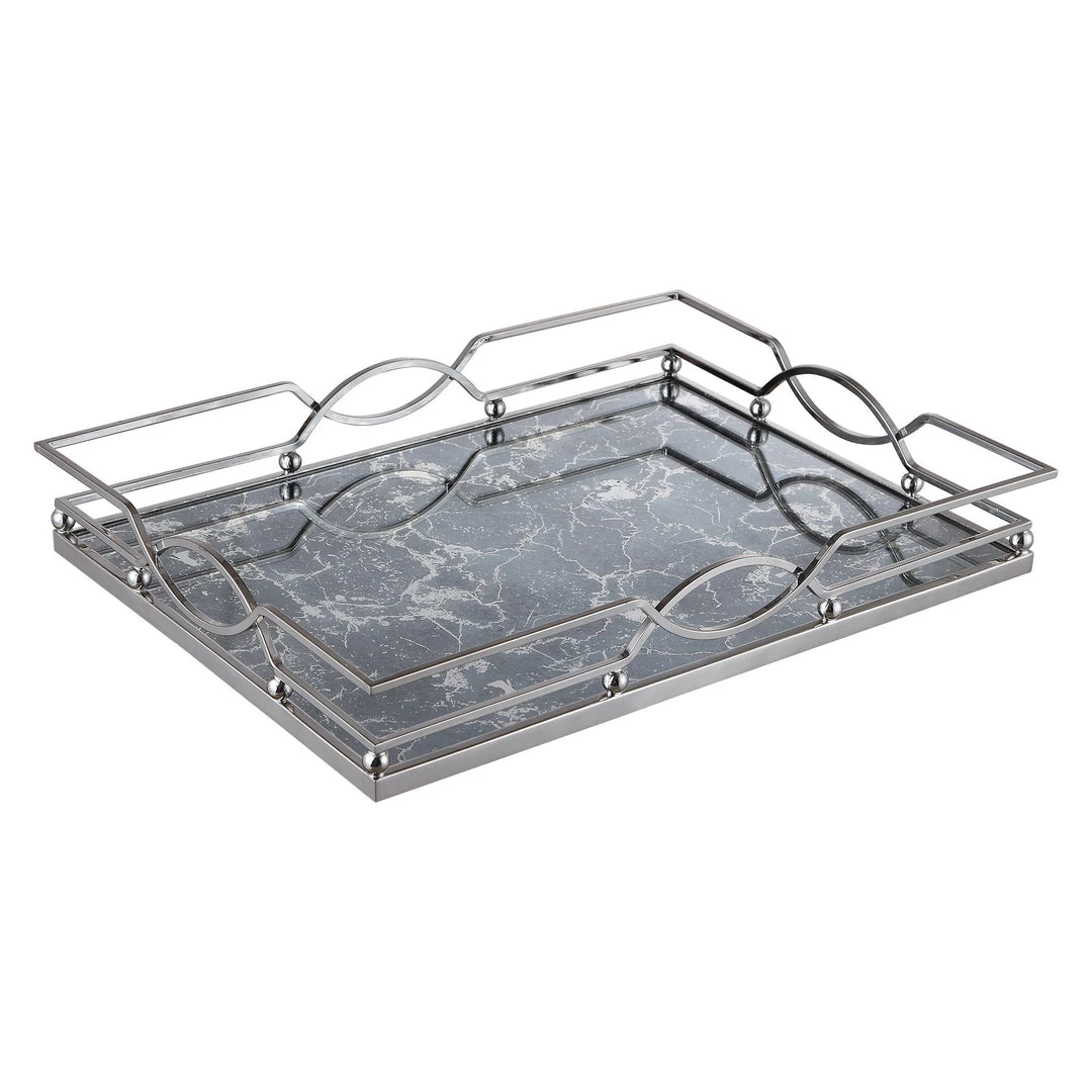 Decorative And Functional Tray Constructed With A Polished Nickel Plated Frame And An Antique Mirror Base.