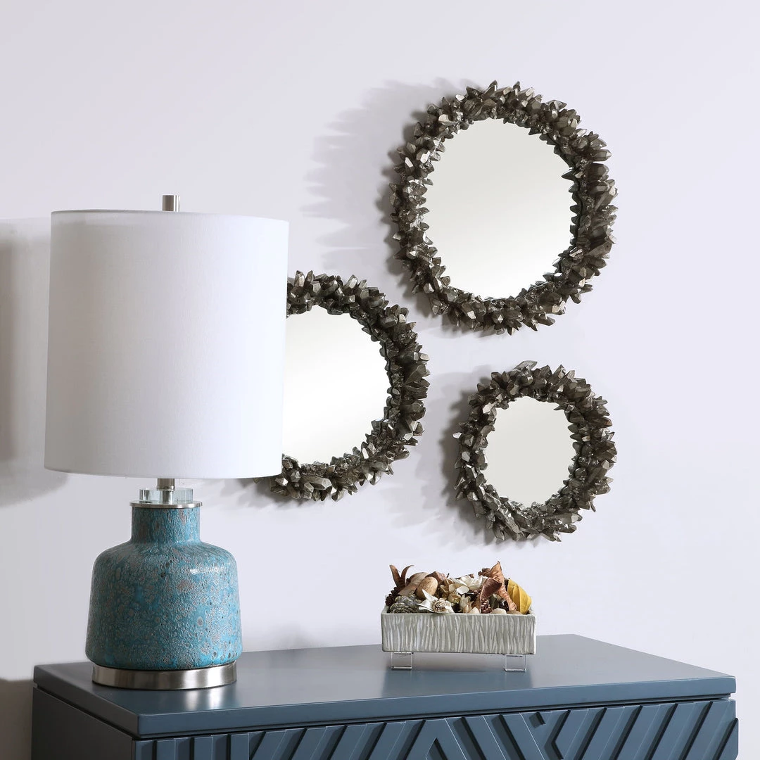 Inspired By Worldly Adventures And A Well-traveled Lifestyle, This Set Of Three Mirrors Display A Natural Rock Crystal Motif Finished In Antique Silver Leaf. Multiple Sizes Allow For An Array Of Unique Display Options. Sizes: S-12″x3″, M-15″x3″, L-17″x3″