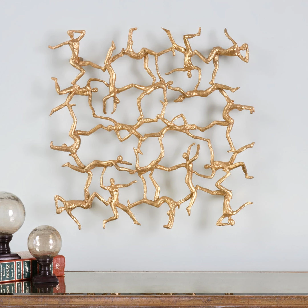 Whimsical Figurines Connect To Form This 3-dimensional Wall Plaque Finished In A Metallic Gold Leaf.