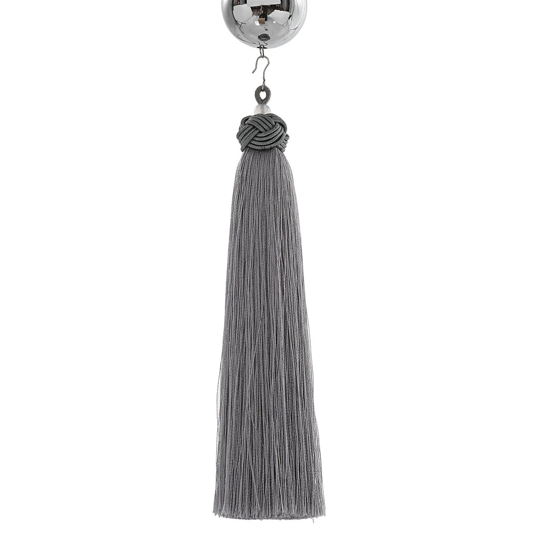 Timeless, Refined & Lavish Our Fluted Silver Mist Velvet Shade 4 Lt. Pendant Features Plated Smoke Glass Accents On The Center Column With A Chrome Finish. We Have Supplied Both An Opulent Silken Silver Gray Tassel Finial And A Chrome Ball Finial So You Can Customize To Match Your Interior Look. 4-100 Watt Max, Edison Sockets. Includes 15′ Wire & 7′ Chain For Adjustable Installation.