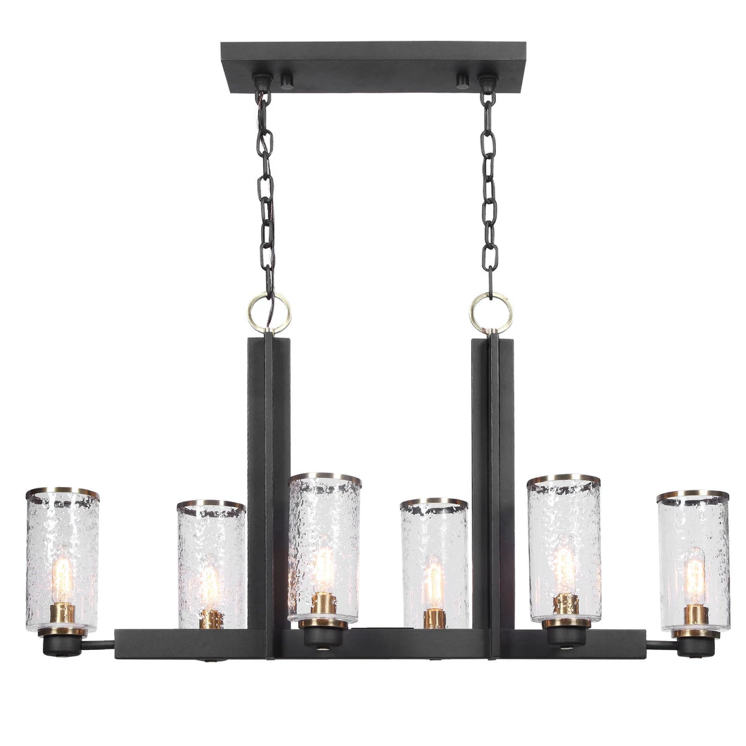 Refined Industrial With Clean Lines On Our 6 Lt. Island Features A Sanded Black Finish On The I-beam Style Frame With Refined Antique Brass Accents And Clear Meteor Shower Glass Shades. With 6-60 Watt, Max Edison Sockets And Includes 6-40 Watt T10, Clear Bulbs. Supplied With 20′ Wire And 7′ Chain For Adjustable Installation.