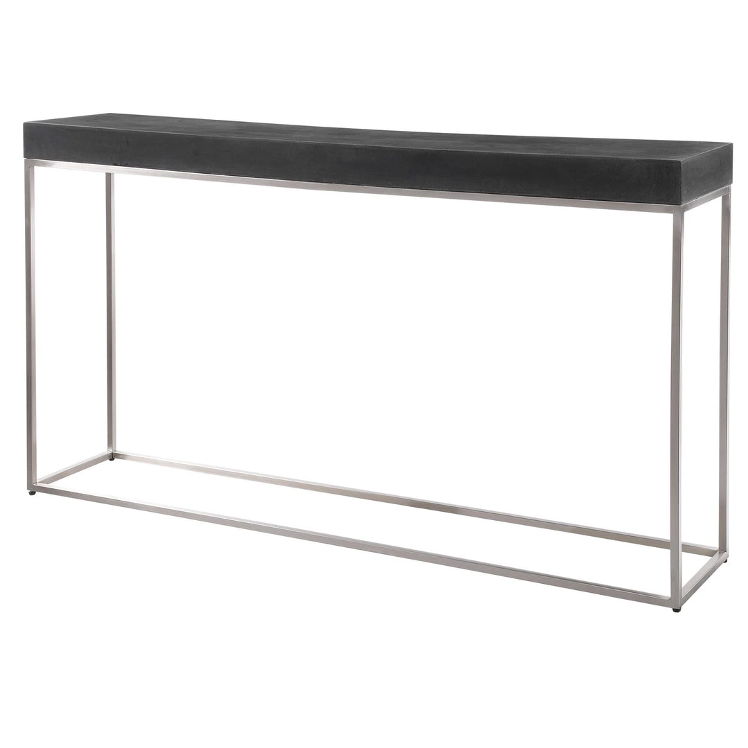 Sleek And Contemporary, This Console Table Features A Black Concrete Look Atop A Brushed Nickel Stainless Steel Base.