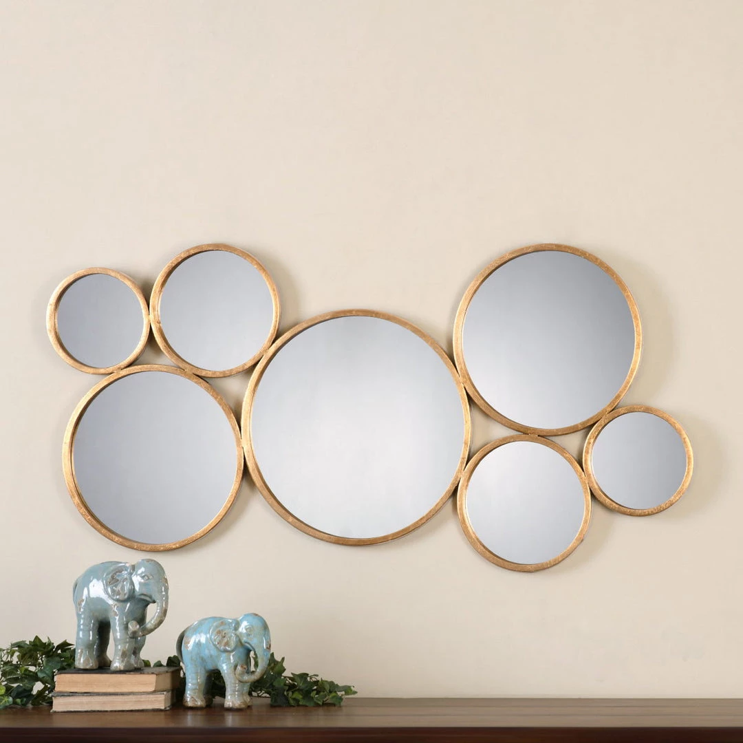 Numerous, Varying Sized Metal Rings Welded Together And Finished In A Lightly Antiqued Gold Leaf Encase The Assortment Of Mirrors. May Be Hung Horizontal Or Vertical.