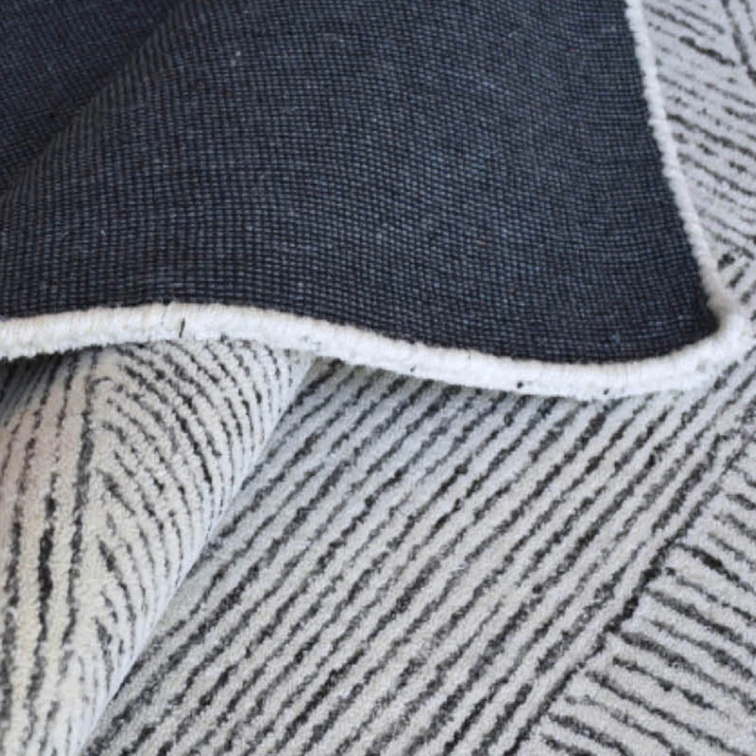 This Hand Tufted Rug Features Geometric Patterns With Linear Details In Ivory And Gray Wool In A Medium Cut Pile.